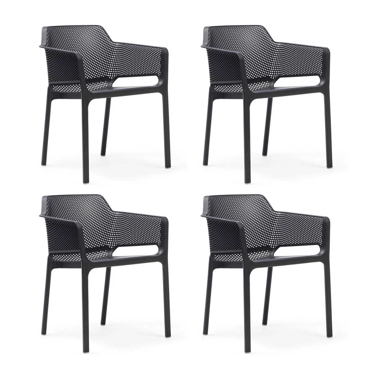 Erhältlich ist der von Raffaello Galiotto entworfene Net Armlehnstuhl in verschiedenen Farben mit Matt-Effekt, die sich hervorragend untereinander sowie mit weiteren Gartenmöbeln von Nardi kombinieren lassen. Passende Auflagekissen sind separat erhältlich.