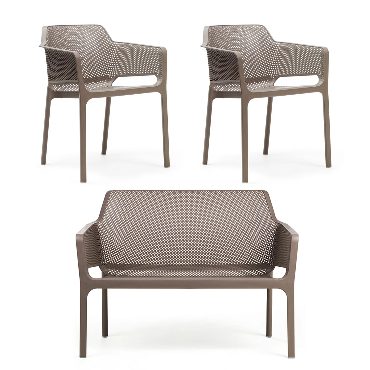 Erhältlich ist der von Raffaello Galiotto entworfene Net Armlehnstuhl in verschiedenen Farben mit Matt-Effekt, die sich hervorragend untereinander sowie mit weiteren Gartenmöbeln von Nardi kombinieren lassen. Passende Auflagekissen sind separat erhältlich.