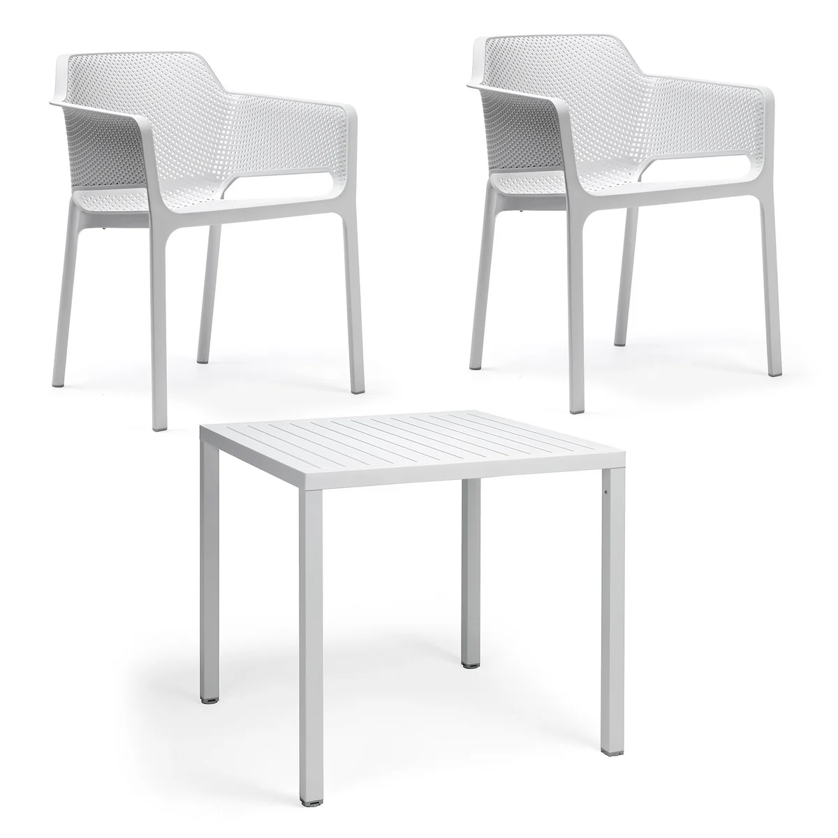 Erhältlich ist der von Raffaello Galiotto entworfene Net Armlehnstuhl in verschiedenen Farben mit Matt-Effekt, die sich hervorragend untereinander sowie mit weiteren Gartenmöbeln von Nardi kombinieren lassen. Passende Auflagekissen sind separat erhältlich.