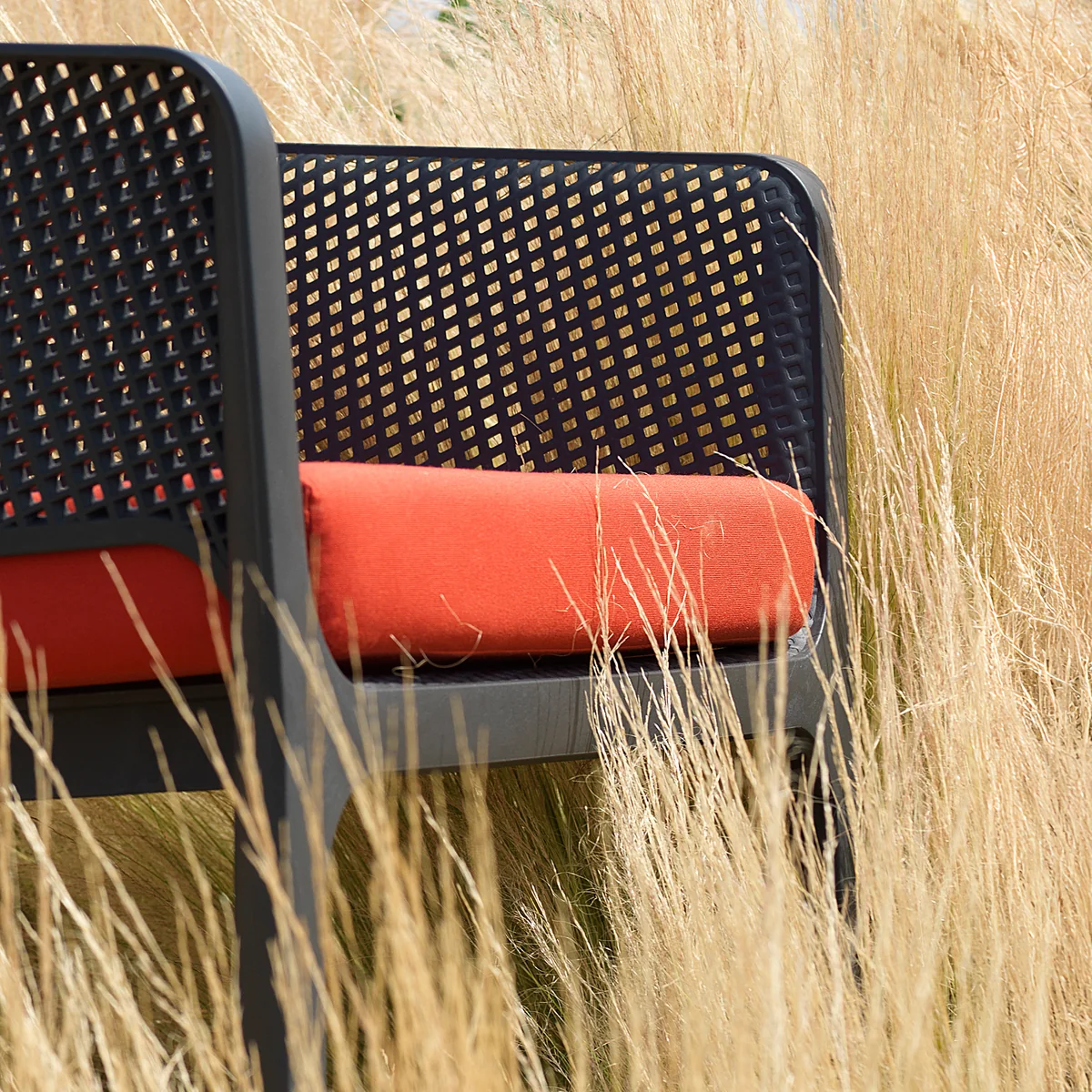 Mit seiner großzügigen Sitzfläche, den breiten Armlehnen und dem ergonomischen Design lädt der Net Relax Stuhl zum entspannten Verweilen ein. Das filigrane Lochmuster sorgt für eine luftige Optik und macht den Stuhl leicht und angenehm. Er ist in mehreren Farben erhältlich und einfach stapelbar.