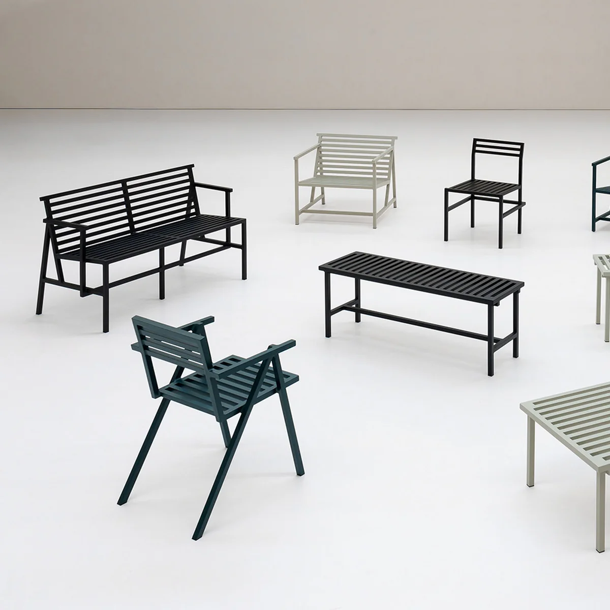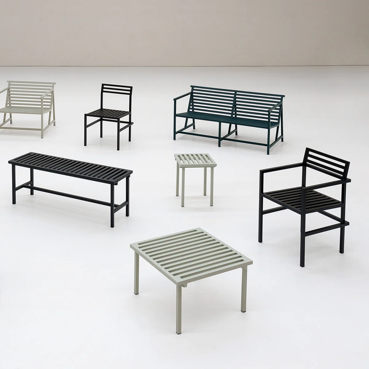 Die 19 Outdoors Gartenbank der Butterfield Brothers für den Hersteller NINE begeistert mit ihrem einzigartigen, modernen Design. Die '19 Outdoor' Kollektion ist von dem Wohltätigkeitsprojekt '19 Chairs' der Designer inspiriert. Die Bank eignet sich für den Outdoor-Bereich und wird aus Aluminium gefertigt. Das Material kann mit wenig Energieeinsatz recycelt und als recycelbarer Artikel wiederverwendet werden - demnach ist der vollumfassende Produktionsprozess nachhaltig. Die Gartenbank ist in unterschiedlichen Farben erhältlich.