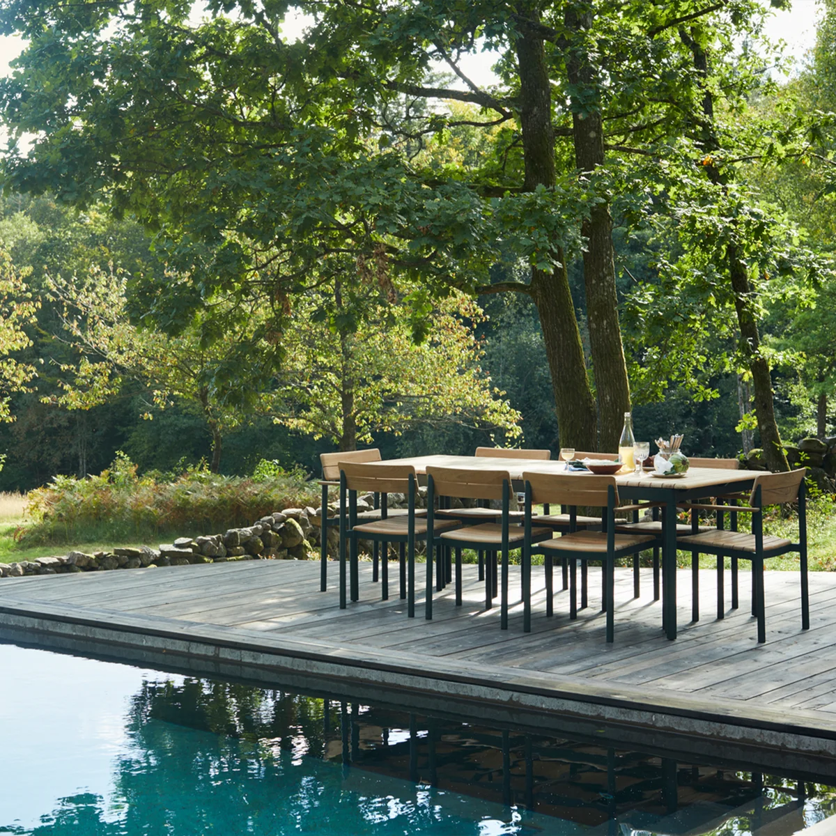 Der Pelagus Armlehnenstuhl von Note Design Studio für Skagerak verkörpert Anmut und Geselligkeit durch seinen zeitgenössischen Ausdruck. Die breiten Armlehnen aus Holz bieten außerordentlichen Komfort für lange Abende. Dennoch ist der Stuhl insgesamt schlank genug, um sich um einen Tisch herum zu gruppieren. Die Lehnen sind zudem so geformt, dass zwei Stühle übereinander gestapelt werden können.