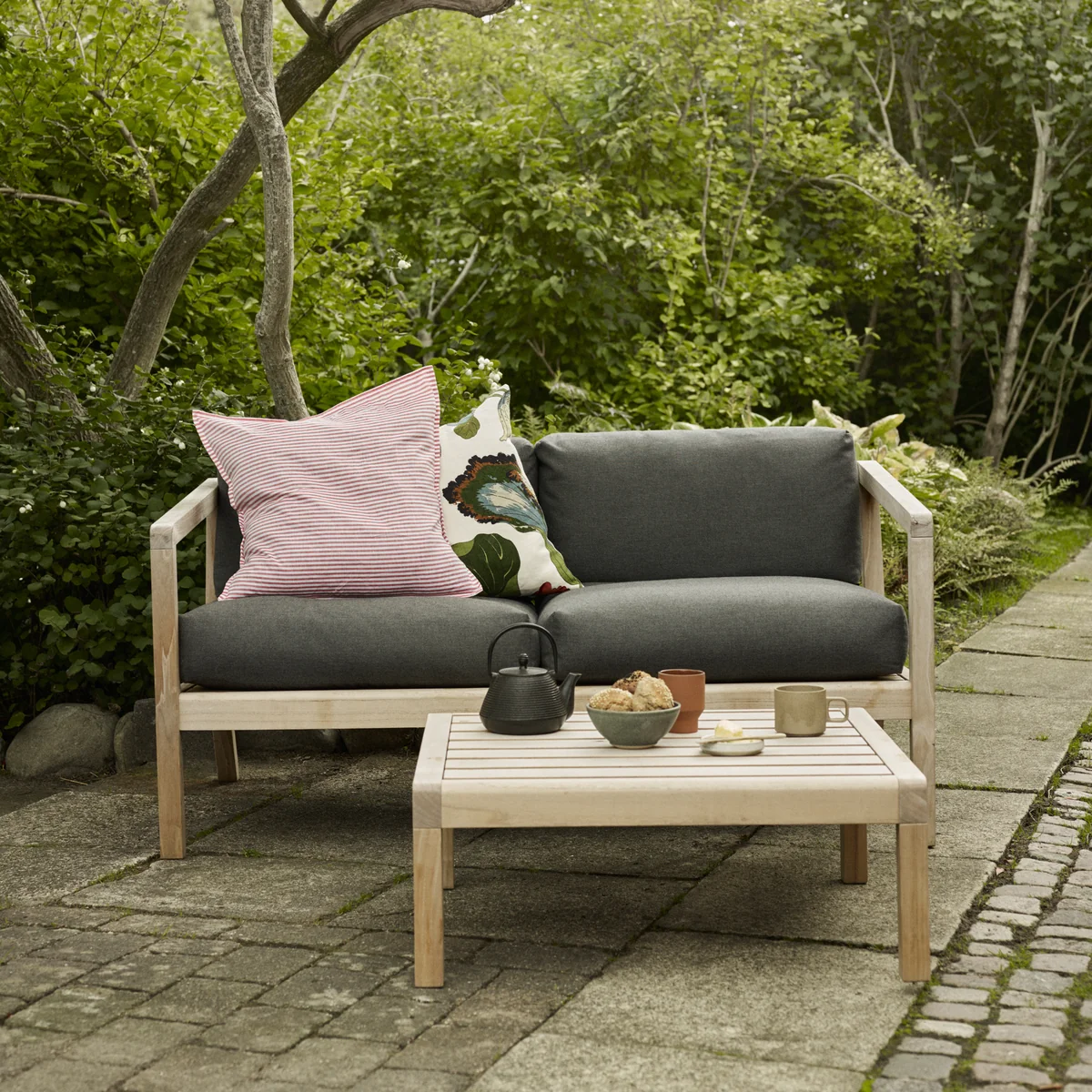 Das Virkelyst Sofa von Skagerak ist mit seinem Mix aus natürlichem Holz und wetterbeständigen Polstern ein gemütlicher Begleiter für den Außenbereich. Als Teil der Virkelyst Serie lässt sich das Sofa bei Bedarf mit einem passenden Sessel, Pouf oder Couchtisch ergänzen und so zu einer großzügigen Loungeecke zusammenstellen.