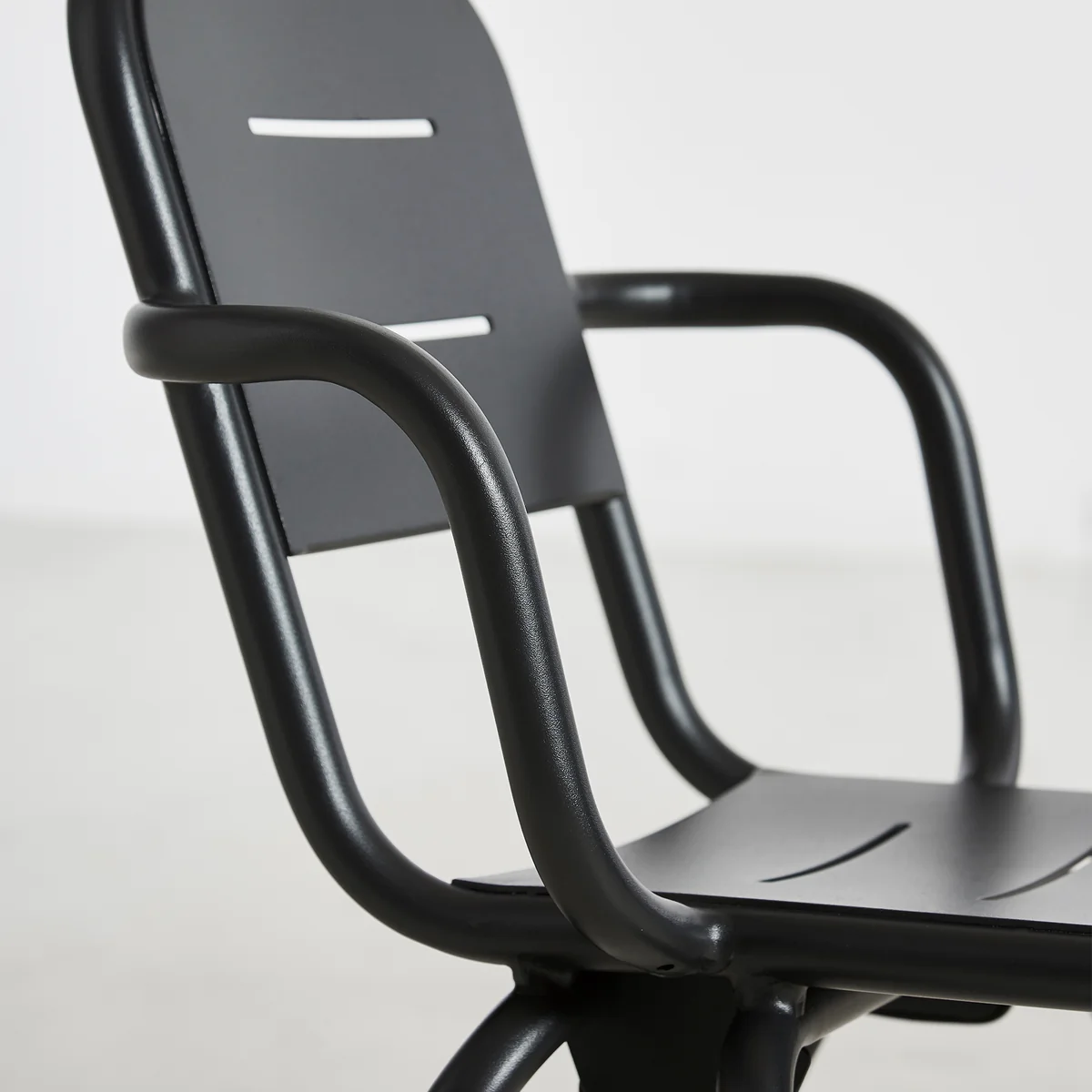 Der Ray Café Armchair von Woud gehört zu einer Serie an Outdoormöbeln für den privaten und öffentlichen Gebrauch. Entworfen wurde die optisch ansprechende Serie an Stühlen und Tischen von Fasting und Rolff. Der Armlehnstuhl überzeugt durch seine weichen Rundungen und das robuste, pulverbeschichtete Aluminium. Der Stuhl macht sich gut auf Balkon oder Terrasse sowie vor einem Café und Restaurant.