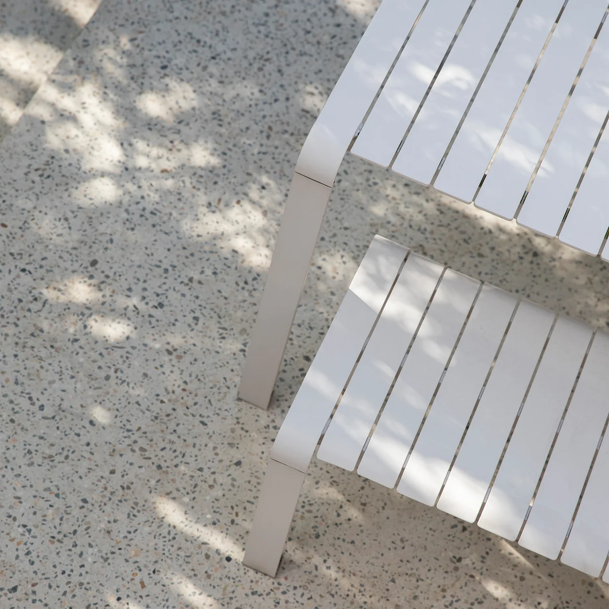 Das Gestell besteht aus wetterfestem, pulverbeschichtetem Aluminium, wodurch die Bank rostfrei, UV-beständig und pflegeleicht ist. Die leicht geneigte Rückenlehne und die großzügige Sitzfläche sorgen für entspanntes Sitzen. Als Teil der modularen Vondel-Serie lässt sich die Gartenbank mit passenden Stühlen und Tischen kombinieren, um ein einheitliches Outdoor-Ensemble zu schaffen.