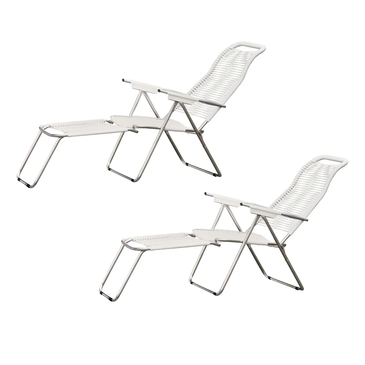 Der Liegestuhl Spaghetti von Fiam überzeugt mit einem Aluminium-Gestell und einer PVC-Band Schnürung in Spaghettiform. Das Design stammt aus den 1980er Jahren und ist nicht nur zeitlos und modern, sondern auch äußerst bequem.