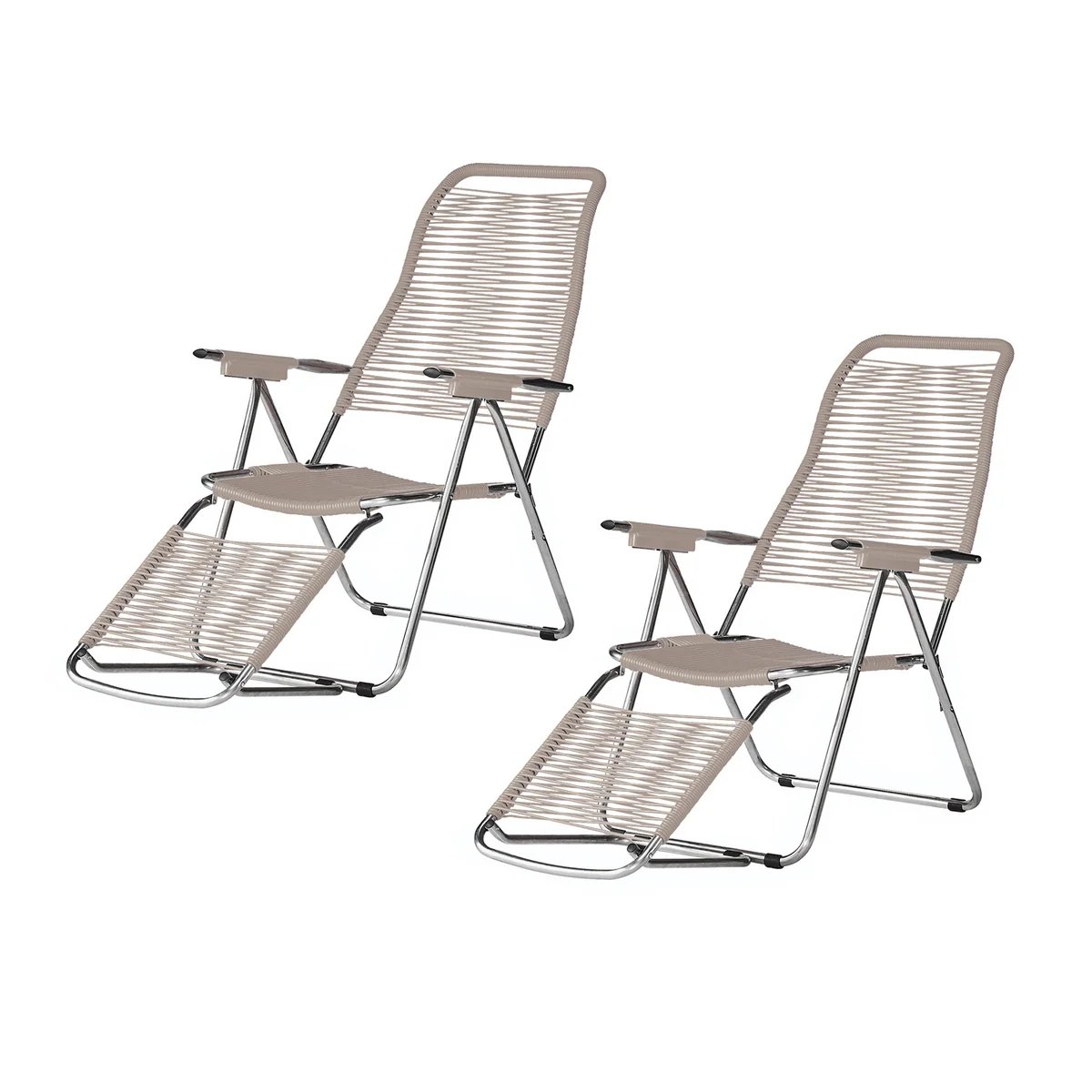Der Liegestuhl Spaghetti von Fiam überzeugt mit einem Aluminium-Gestell und einer PVC-Band Schnürung in Spaghettiform. Das Design stammt aus den 1980er Jahren und ist nicht nur zeitlos und modern, sondern auch äußerst bequem.
