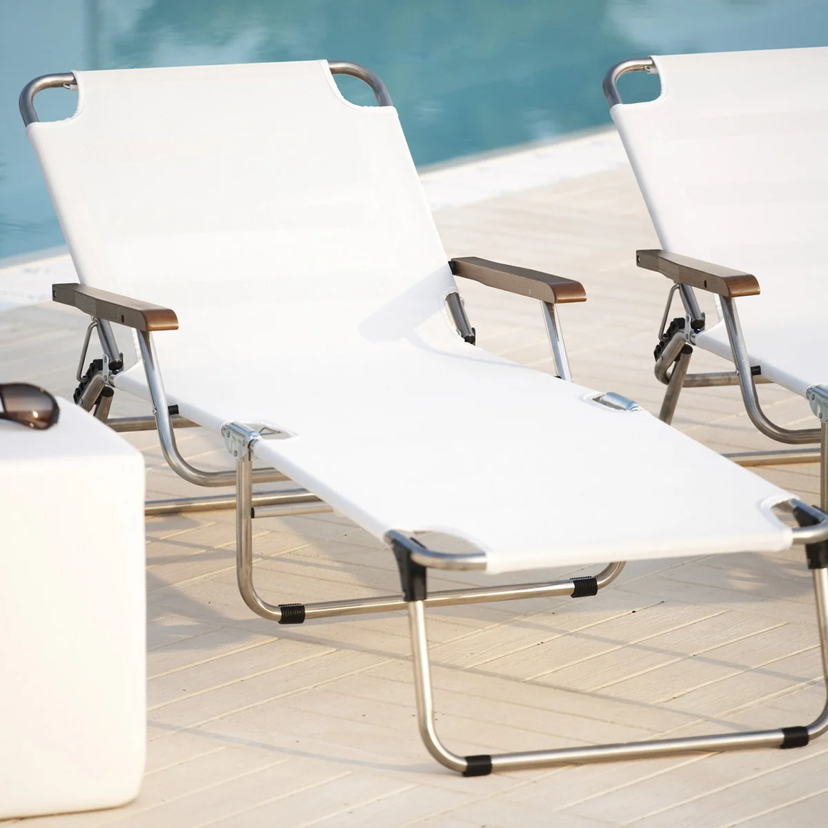 Die Design-Liege Amigo des italienischen Herstellers Fiam überzeugt durch eine klassisch-schlichte und zeitlose Optik. In der Version mit Armlehnen verspricht die Sonnenliege zusätzlichen Komfort.