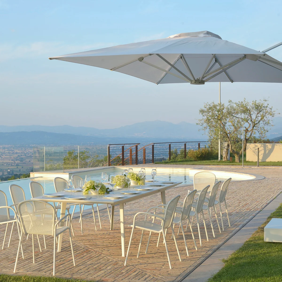 Der Plus4 Outdoor Tisch des Herstellers Emu lässt sich im Handumdrehen verlängern; Er lässt sich nämlich ausziehen! Die Oberfläche des Tisches besteht aus gepresstem Stahl und wurde im Nachgang nochmal bearbeitet, um eine angenehmere Ästhetik ermöglichen zu können. Die Schienen, mit denen die Tischplatte erweitert werden kann, wurde von Emu speziell für die Plus4 Linie entwickelt. Der sogenannte Schmetterlingsöffnungsmechanismus im Inneren erleichtert das Ausklappen dieser Tische.