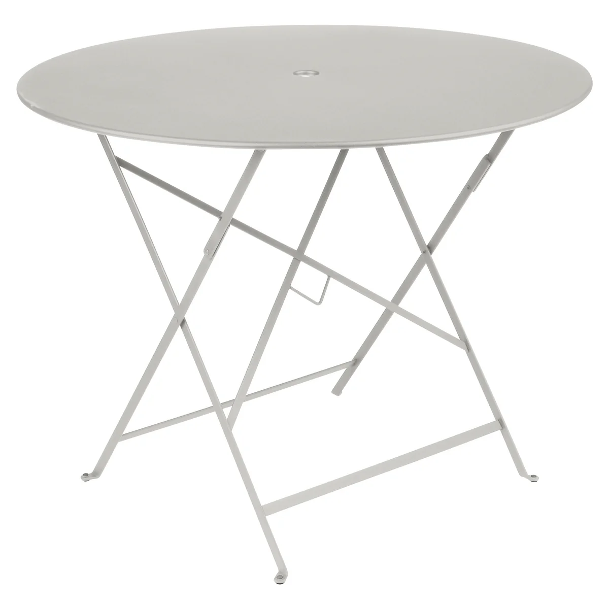 Der Fermob Gartentisch verfügt über eine kleine Aussparung in der Mitte der Tischplatte, die als praktische Sonnenschirmhalterung dient. Dabei können Sonnenschirme mit einem Ständer von max Ø 41 cm in die Tischplatte eingelassen werden.
