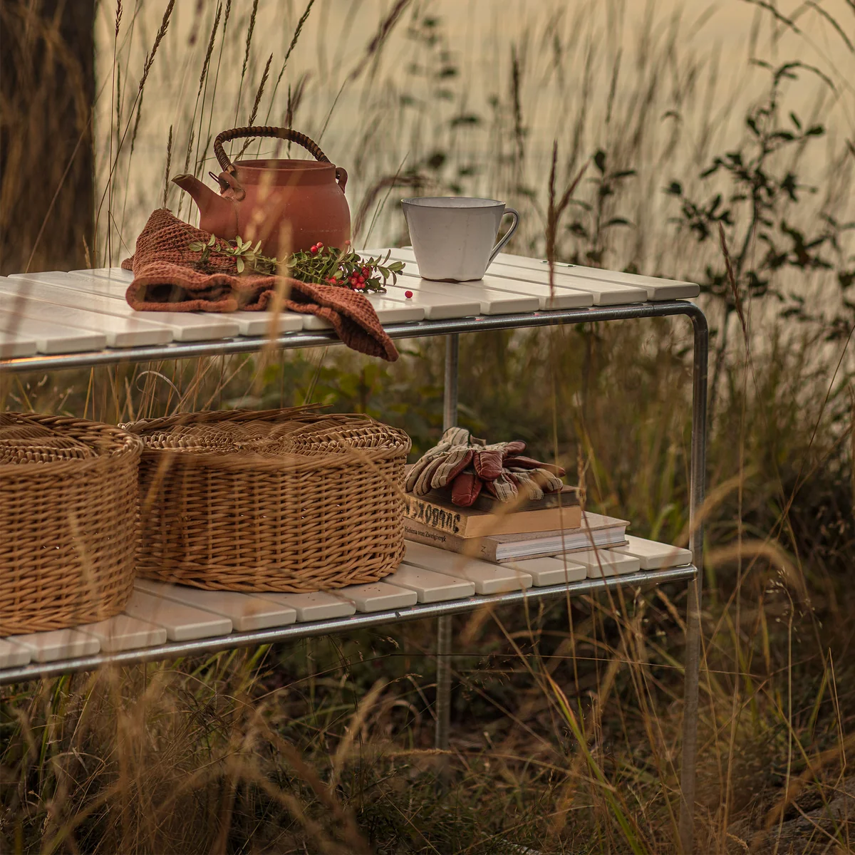 Der L105 Gartenbeistelltisch, entworfen von Maria Håård und Jan-Olof Ågren für den schwedischen Hersteller Grythyttan, fügt sich perfekt in die Klassiker-Serie ein. Dank seiner zwei Ebenen ist er besonders praktisch und kann vielseitig verwendet werden. Je nach Präferenz ist der Gartenbeistelltisch in einer Vielzahl von Varianten erhältlich.