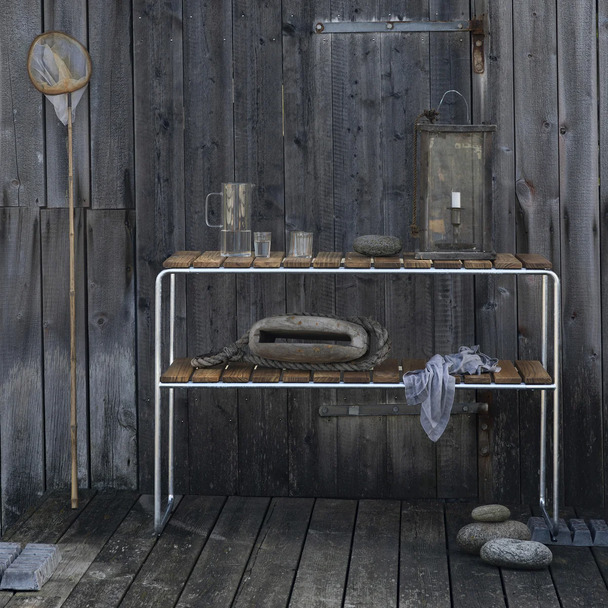 Beistelltisch für den Außenbereich aus Holz und feuerverzinktem Stahl