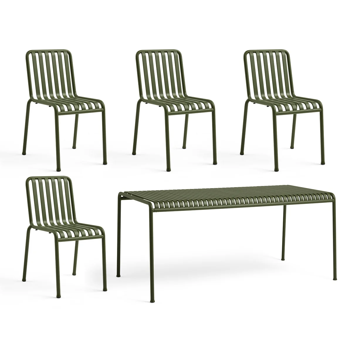 Die Palissade Stuhl von HAY wurde von den Design-Brüdern Ronan und Erwan Bouroullec entworfen und ist ein funktionelles sowie ästhetisches Möbelstück für den Outdoor-Bereich. Durch die lattenförmig angeordnete Sitzfläche fließt Regenwasser durch die Aussparung zwischen den Streben problemlos ab, sodass der Stuhl auch bei schlechtem Wetter problemlos draußen bleiben kann.