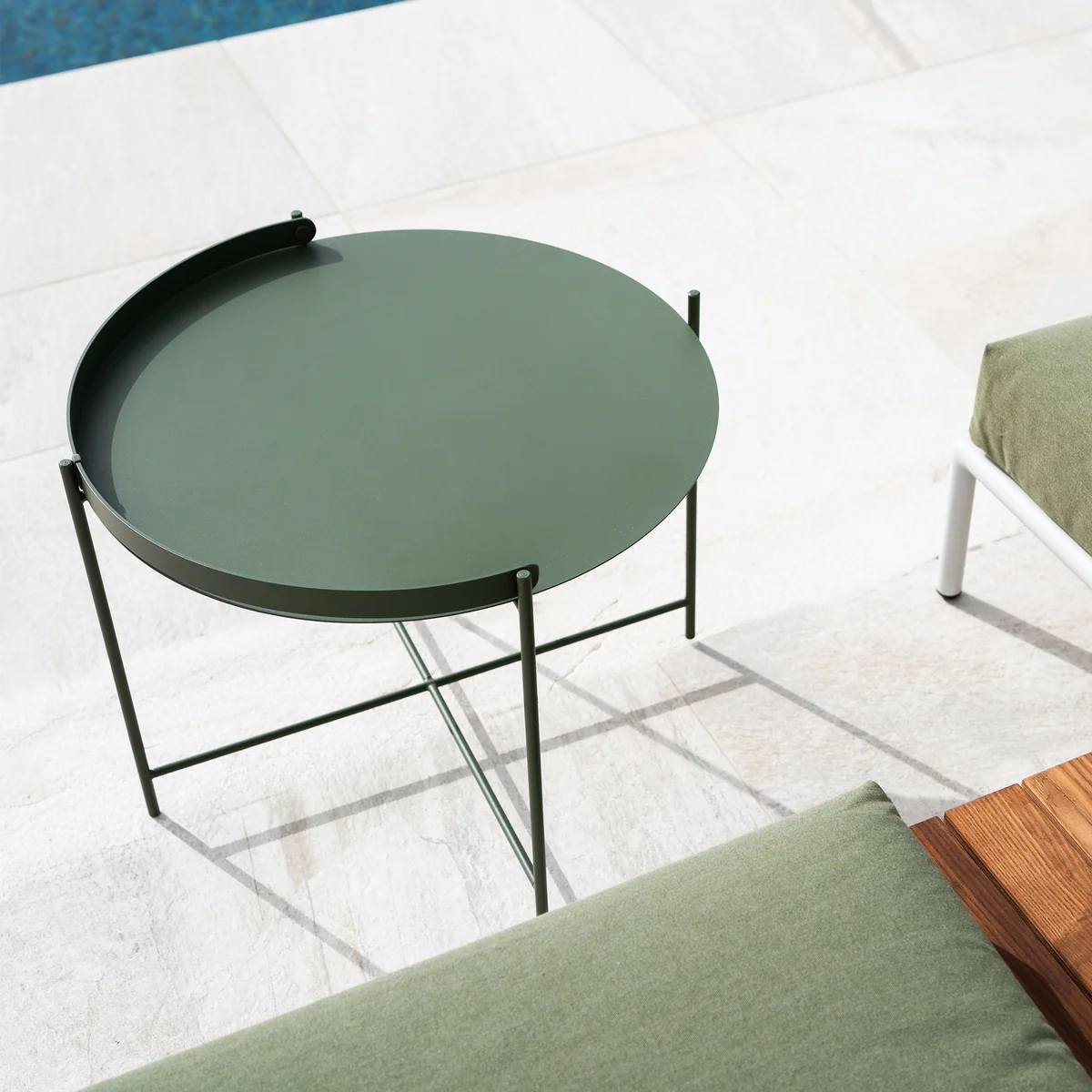 Die kompakte Tischfläche bietet ausreichend Platz für Getränke, Bücher oder kleine Accessoires und macht den EDGE Beistelltisch zu einem praktischen Begleiter neben Lounge-Sessel, Sofa oder Sonnenliege. Durch sein leichtes Design lässt er sich flexibel umstellen und vielseitig einsetzen.