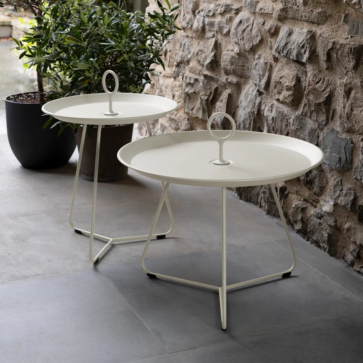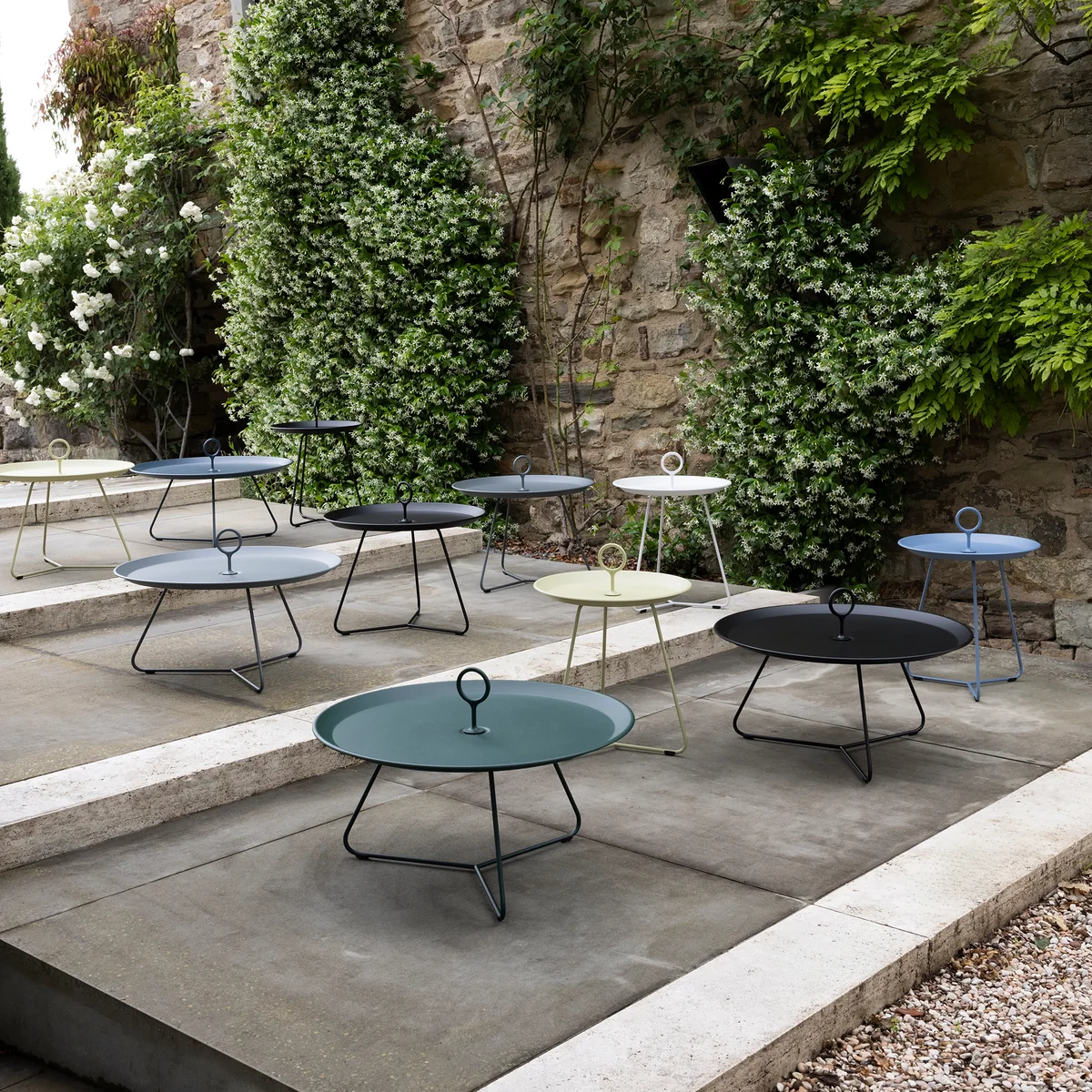 Der EYELET Beistelltisch von HOUE überzeugt durch sein grafisch ansprechendes Design und seine vielseitigen Einsatzmöglichkeiten. Ob als einzelner Blickfang oder in Kombination mit Tischen in unterschiedlichen Größen und Farben – dieser Tray Table lässt sich mühelos an jeden Ort verschieben, sei es drinnen oder draußen. Dank seines speziellen Drainagesystems bleibt die Tischplatte auch nach einem Regenschauer trocken. Gefertigt aus pulverbeschichtetem Stahl und Aluminium, ist der EYELET Beistelltisch in zwei Größen (Ø 45 cm und Ø 57,5 cm) erhältlich und bietet mit verschiedenen Farboptionen maximale Gestaltungsfreiheit. Designed by Henrik Pedersen.