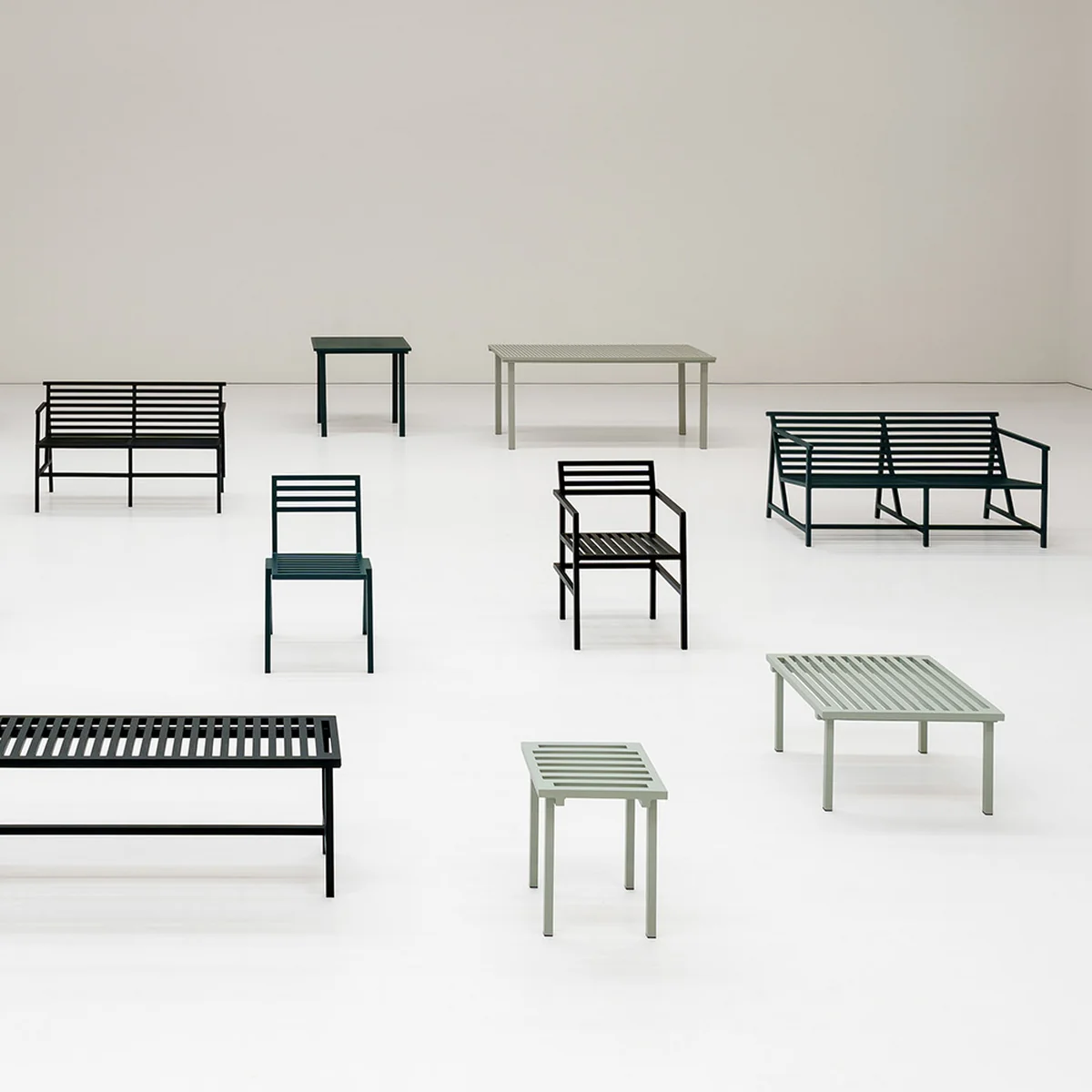 Jeder Artikel der Serie verfügt über ein individuelles Design. Durch das Material, die Farbe und Proportionen der Aluminiumextrusion vereinheitlichen die gesamte Kollektion. Der Basis der '19 Outdoor' Serie ist das Designprojekt '19 Chairs' - 19 Stühle wurden in 19 Tagen gefertigt, geliefert an 19 Orte, überarbeitet von 19 Kreativen und das während der COVID-19-Phase. Sinn war es, eine Reaktion zu Gunsten der Age UK & Resourcing Racial Justice, hinsichtlich der Schäden der COVID-19-Restrinktionen innerhalb der Künstlerszene, zu gestalten.