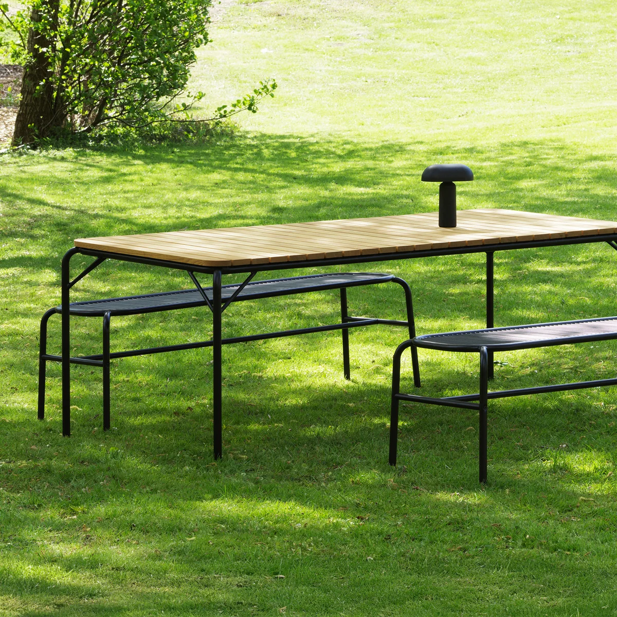 Der Vig Outdoor Tisch von Normann Copenhagen vereint robuste Materialien mit zeitlosem Design und ist damit ideal für den Außenbereich geeignet. Die Tischplatte aus langlebigem Robinienholz besticht durch ihre natürliche Optik und hohe Witterungsbeständigkeit, während das pulverbeschichtete Stahlgestell in verschiedenen Farben erhältlich ist und eine moderne, elegante Note hinzufügt.