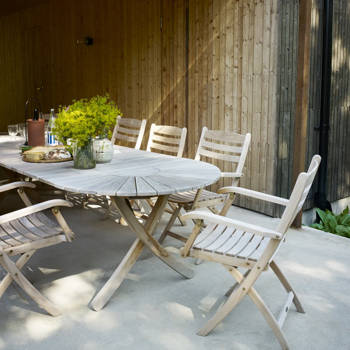 Aus Teakholz gefertigt ist die Selandia Serie von Skagerak besonders widerstandsfähig gegenüber Fäule und Pilzbefall und eignet sich daher ideal für den Outdoorbereich. Um die Schönheit des Holzes zu bewahren empfiehlt es sich, den Teakholz-Gartentisch regelmäßig mit Möbel-Öl zu behandeln, um eine Patinierung des Holzes vorzubeugen.