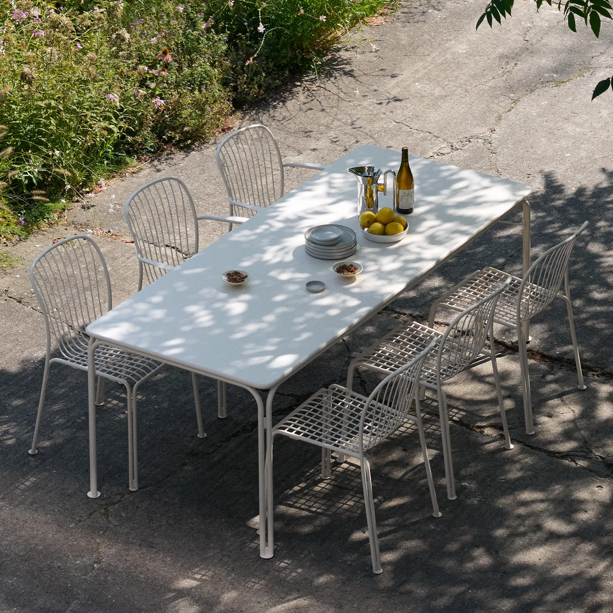 Der Thorvald Gartentisch von Space Copenhagen für &Tradition vereint zeitlose Eleganz mit funktionaler Robustheit. Inspiriert von der neoklassischen Ästhetik des Bildhauers Bertel Thorvaldsen, besticht der Tisch durch klare, geometrische Formen und eine luftige Silhouette. Die solide Tischplatte bildet einen spannenden Kontrast zum filigranen Stahlrahmen. Dank hochwertiger Materialien und witterungsbeständiger Verarbeitung eignet sich der Tisch perfekt für Garten, Terrasse oder stilvolle Outdoor-Bereiche.