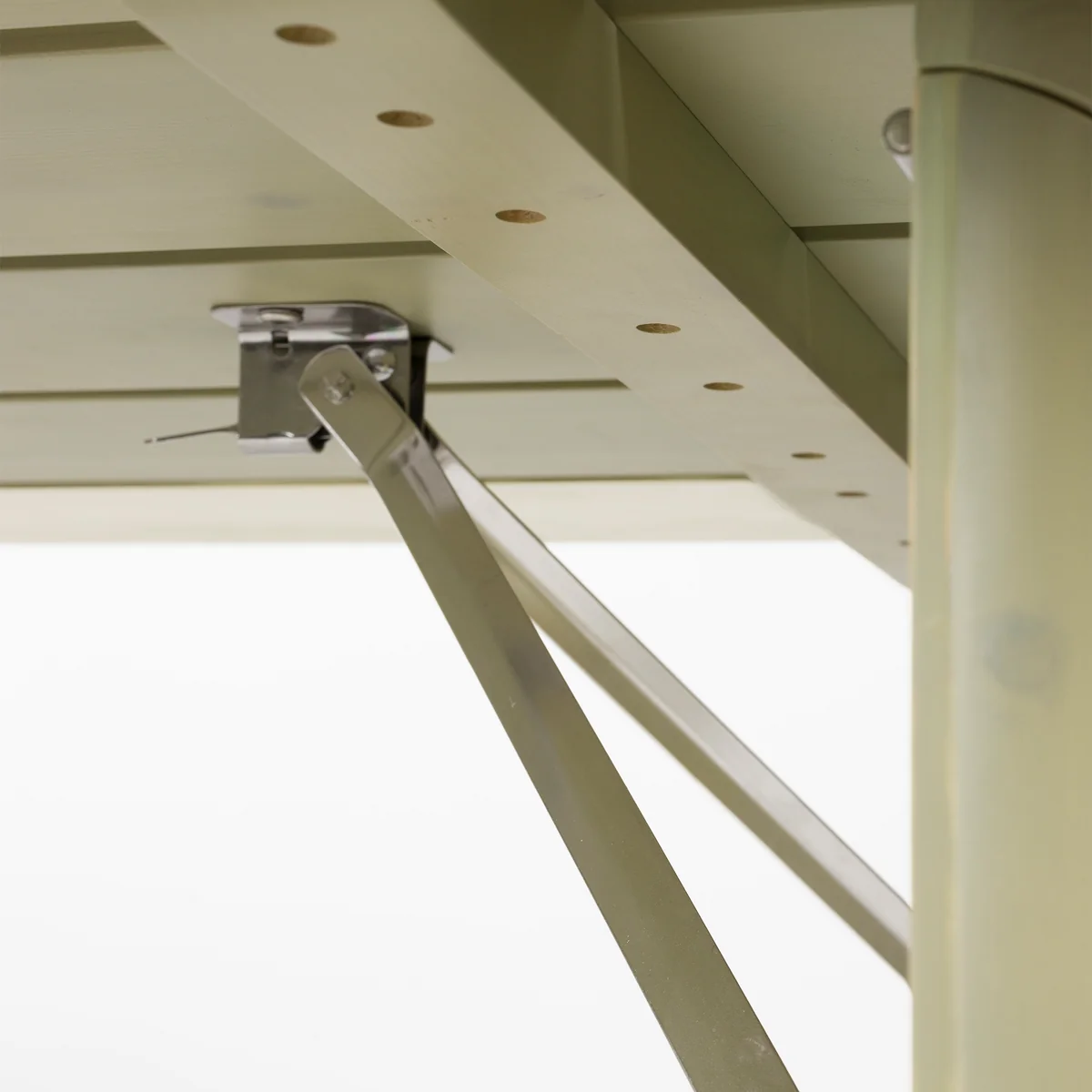 Besonders clever: Unter der Tischplatte befindet sich ein integrierter Flaschenöffner – für den schnellen Drink zwischendurch. Und wenn das Wetter umschlägt, ist der Tisch dank praktischer Klappmechanik schnell und platzsparend verstaut.