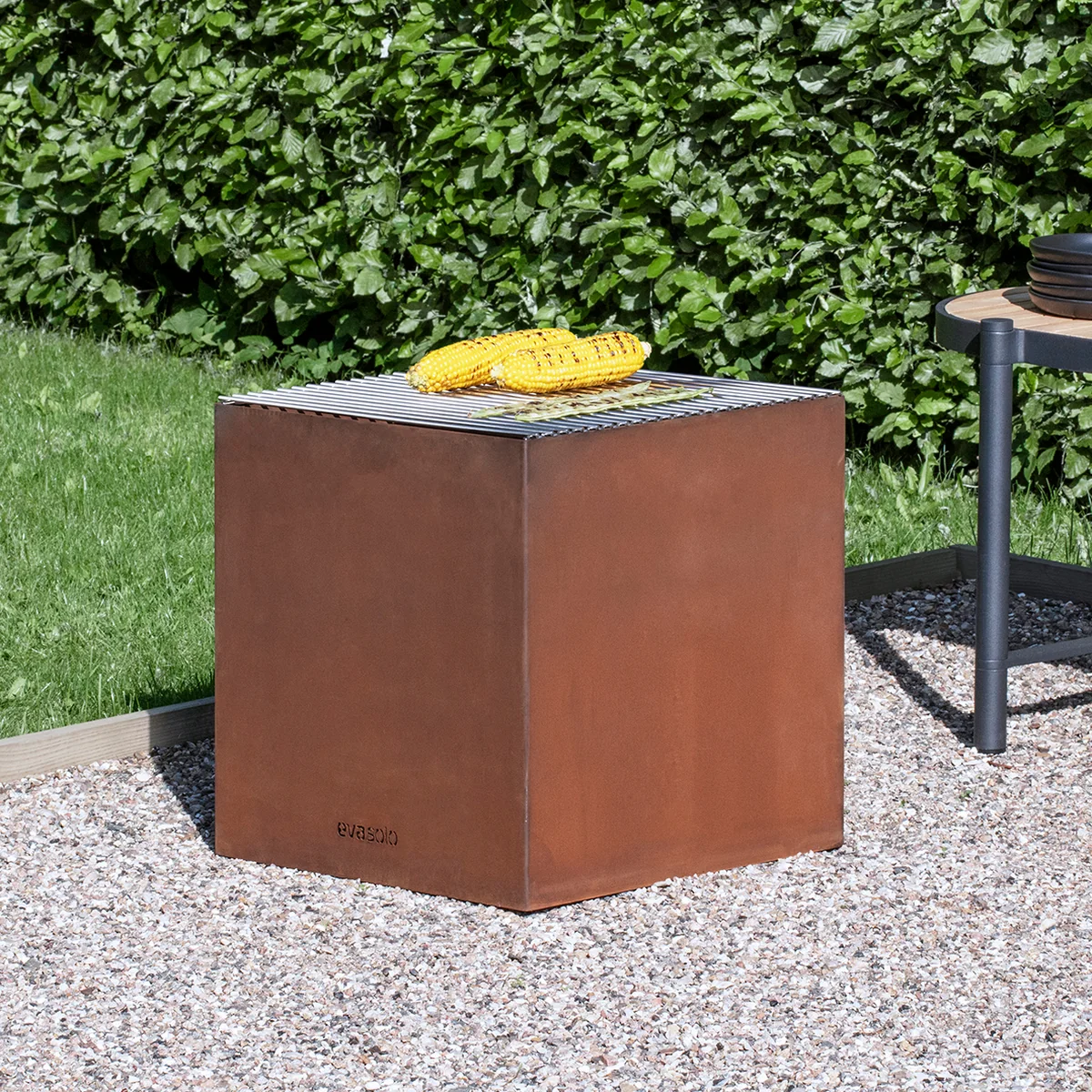 Dieser skulpturale, rustikale Holzofen von Eva Solo aus Cortenstahl eignet sich perfekt für den Garten oder die Terrasse. Der Kubus kann in unterschiedliche Positionen ausgerichtet werden. Somit ist der Feuerkorb nicht nur besonders einzigartig, sondern dient bei starkem Wind auch als praktischer Windschutz.