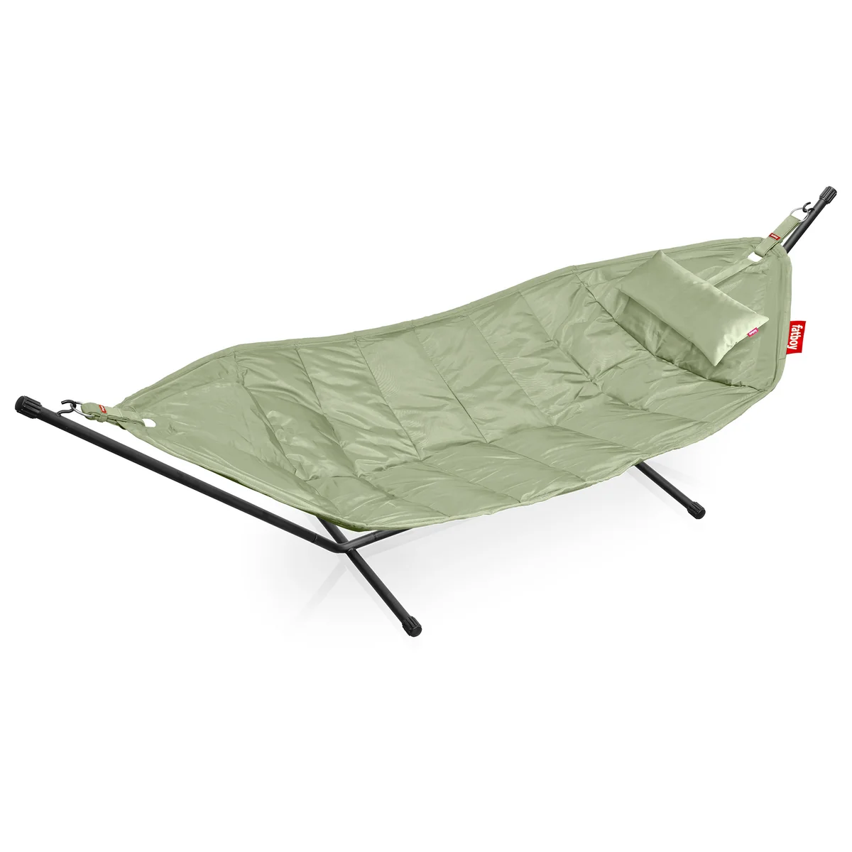 Für ein, zwei oder drei: Die Fatboy Headdemock ist eine Oversize-Hängematte, sie bietet den idealen Ort zum Loungen - für einen Schnack unter Freunden, für ein Ruhestündchen mit der ganzen Familie, für die Kinder zum Spielen oder ganz allein mit allen Vieren von sich gestreckt. Die Hängematte hält, was sie verspricht und bietet im typisch extravaganten oversized Fatboy Design Platz für eine, zwei oder sogar drei erwachsene Personen. Mit einer Traglast von 150 kg leistet das Gestell ganze Arbeit.