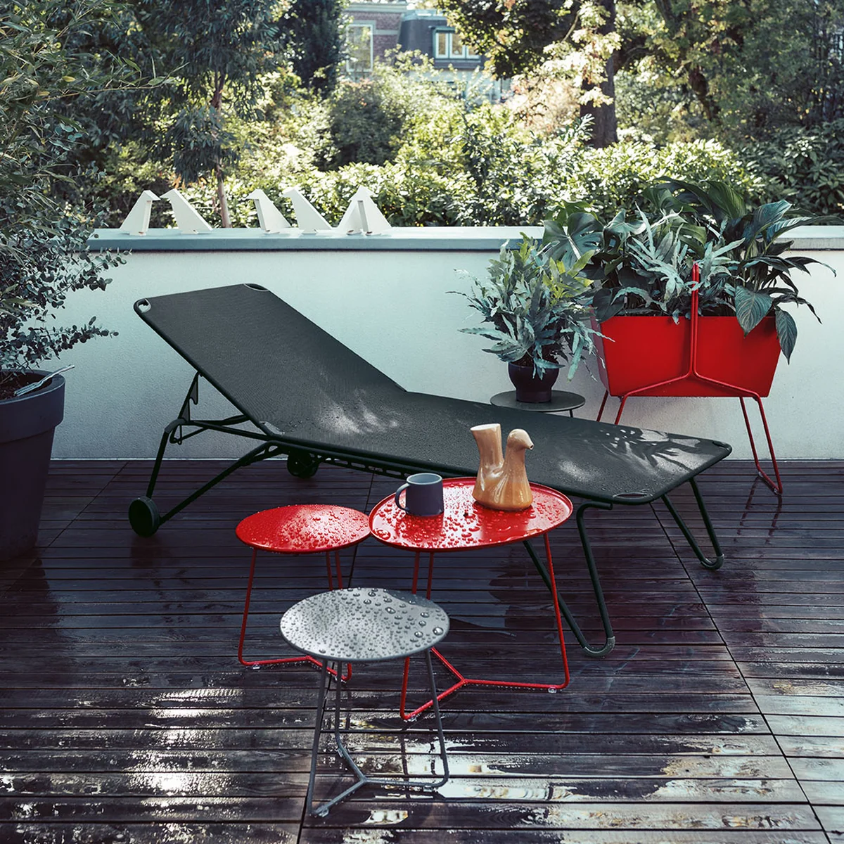 Der Basket Blumenkasten von Fabio Meliota für Fermob präsentiert sich elegant und leicht - eine moderne Alternative zum klassischen Blumenkasten. Wie ein Körbchen mit Henkel wirkt der Blumenkasten und ist dabei ebenso tragbar. Die luftig-leichte Konstruktion besteht aus zwei Bügeln, durch die der Kasten erhöht steht, und einem Bügel, der zum Tragen dient. Inmitten dieser Bügel ist der Korb eingebettet, in dem viele Blumen, Kräuter oder auch Gartenartikel ihren Platz finden. Auch raffiniert: Der Blumenkasten lässt sich wunderbar als Raumtrenner einsetzen und stellt damit in eine schöne Gestaltungsmöglichkeit für die Terrasse dar.