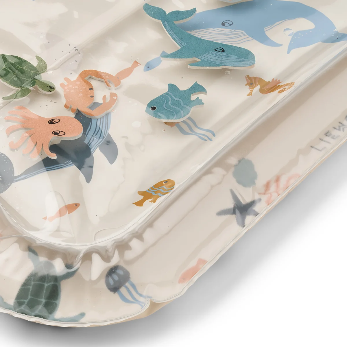 Die aufblasbare Elin Aktivitätsmatte von LIEWOOD bietet eine spannende und sensorische Erfahrung für Babys. Gefüllt mit Wasser, sorgt die Matte für spielerische Entdeckung und fördert die motorische Entwicklung. Die schwimmenden Meeresfiguren regen die Neugier an und laden zum Greifen, Drücken und Erkunden ein.
