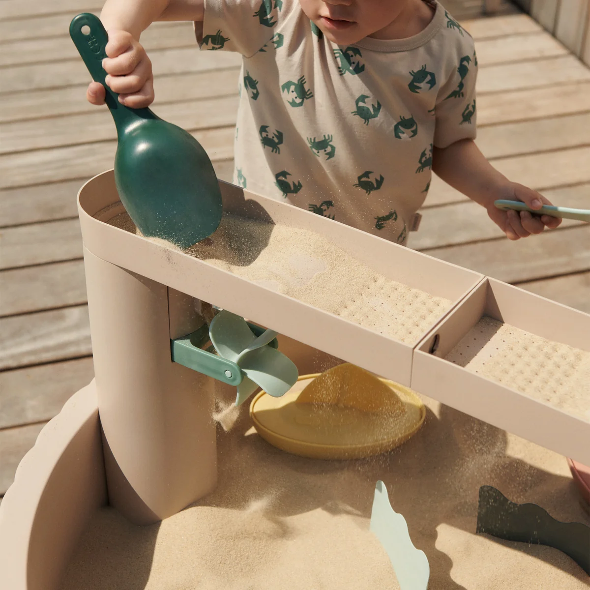Der Sepp Spieltisch von LIEWOOD bietet Kindern vielseitigen Spielspaß im Freien. Ob mit Wasser, Sand oder anderen kreativen Materialien – der Tisch lädt zum Entdecken, Matschen und Experimentieren ein. Dank der zwei herausnehmbaren Wannen lässt sich das Spielmaterial leicht austauschen und reinigen.