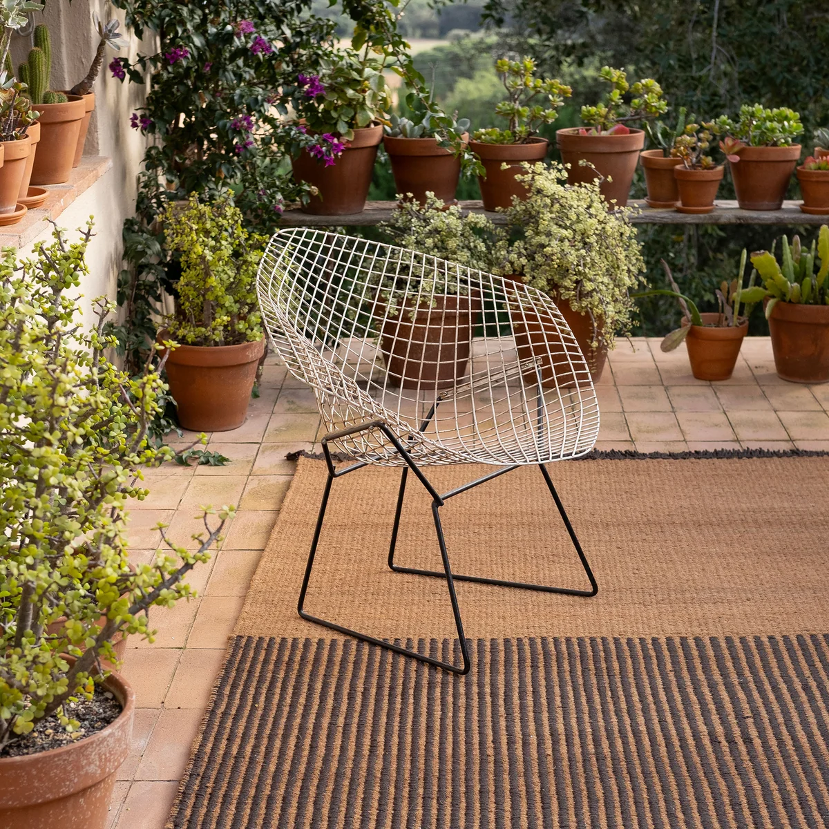 Der Garden Teppich ist speziell für den Außenbereich entworfen und verbindet auf einzigartige Weise Funktionalität, Stil und Umweltbewusstsein. Gefertigt aus recyceltem PET und robuster Kokosfaser, bringt dieser handgewebte Dhurrie-Teppich Wärme und Charakter in Gärten, Terrassen oder Balkone – ohne Kompromisse bei Widerstandsfähigkeit oder Ästhetik. Dank seiner wetterbeständigen Eigenschaften und seiner festen Struktur eignet sich Garden ideal für den täglichen Einsatz im Freien. Das Design fügt sich harmonisch in natürliche Umgebungen ein und schafft ein wohnliches Ambiente unter freiem Himmel.