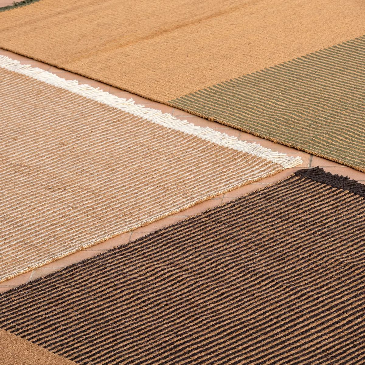 Der Garden Teppich ist speziell für den Außenbereich entworfen und verbindet auf einzigartige Weise Funktionalität, Stil und Umweltbewusstsein. Gefertigt aus recyceltem PET und robuster Kokosfaser, bringt dieser handgewebte Dhurrie-Teppich Wärme und Charakter in Gärten, Terrassen oder Balkone – ohne Kompromisse bei Widerstandsfähigkeit oder Ästhetik. Dank seiner wetterbeständigen Eigenschaften und seiner festen Struktur eignet sich Garden ideal für den täglichen Einsatz im Freien. Das Design fügt sich harmonisch in natürliche Umgebungen ein und schafft ein wohnliches Ambiente unter freiem Himmel.