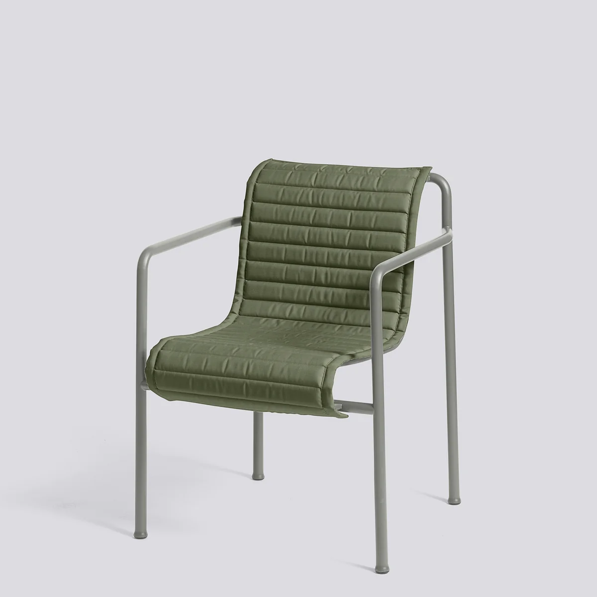Mit dem Palissade Quilted Cushion von Iskos-Berlin für HAY wird der Palissade Dining Armchair aus der gleichnamigen Kollektion von Erwan & Ronan Bouroullec nun noch bequemer. Die gesteppte Polsterung in unterschiedlich passenden Farben besteht aus einer 15 mm dicken Schaumfüllung und einem Bezug aus Polypropylen. Das macht sie witterungsbeständig, wasserfest und robust. Auch die Sonnenstrahlen können das Kissen nicht ausbleichen.