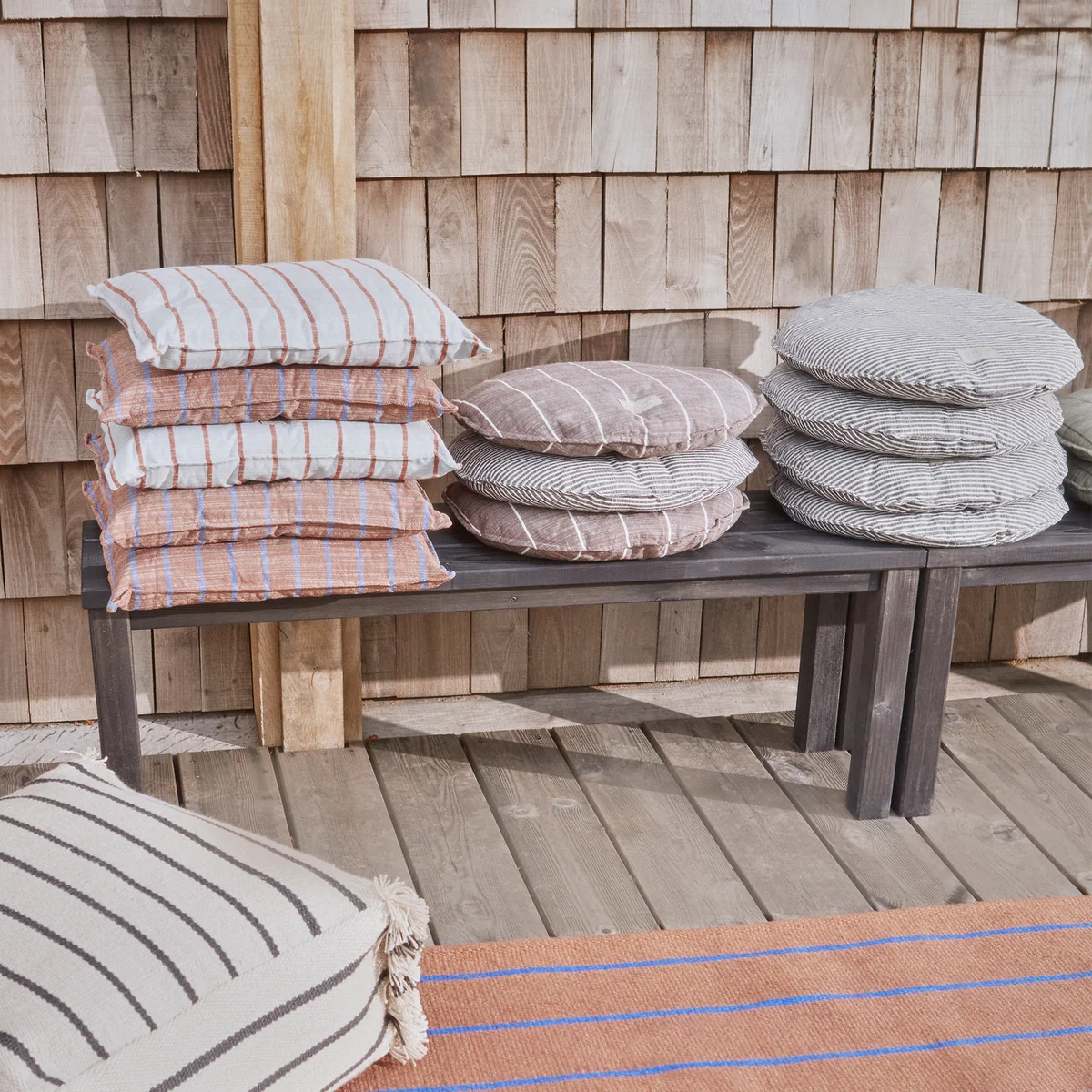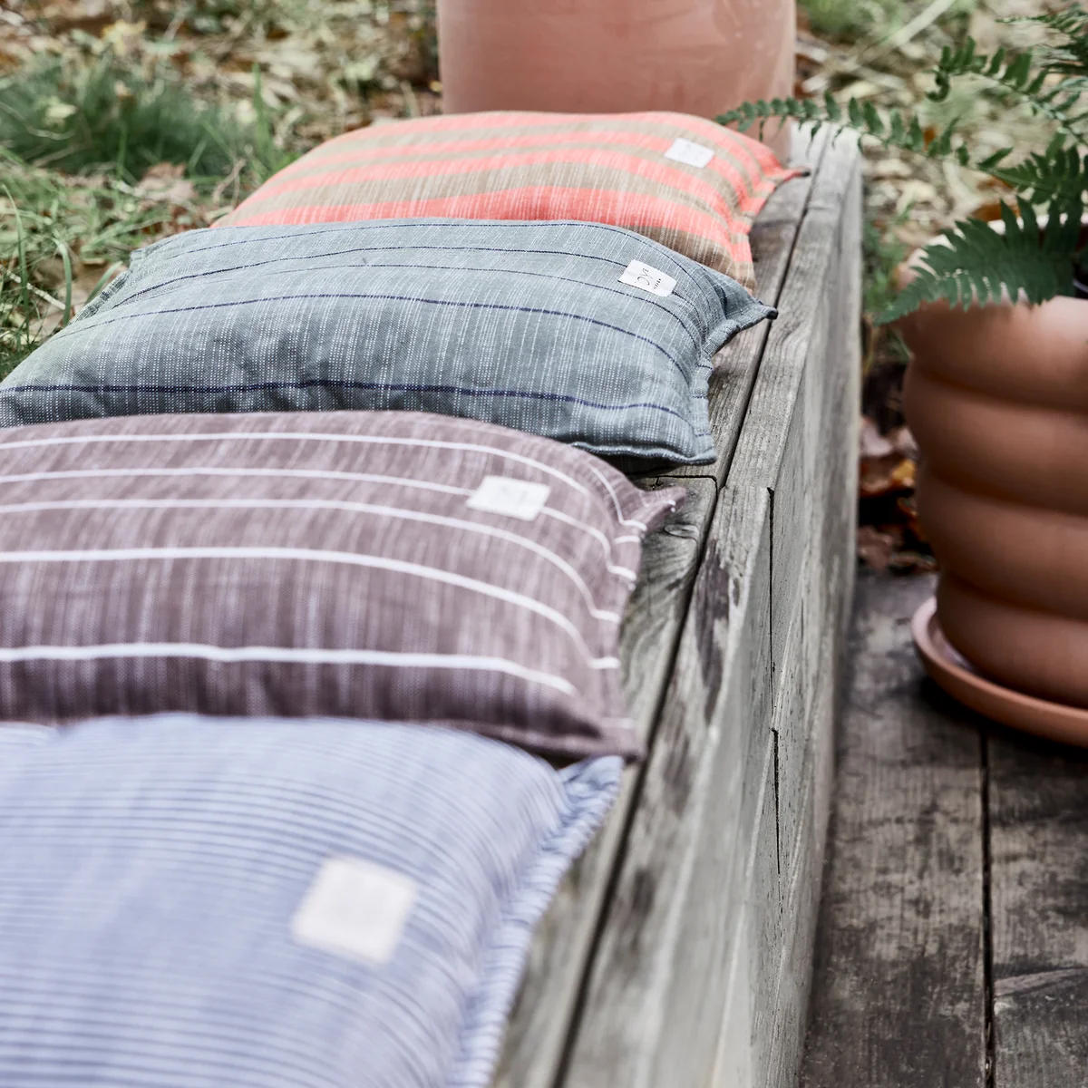 Die Kyoto Outdoor Kissen von OYOY aus recyceltem Polyester sind perfekt für die Terrasse oder den Balkon. Das Kissen in verschiedenen Farben hat ein einfaches und erkennbares Design mit Streifen, das einen gemütlichen und persönlichen Ausdruck schafft.