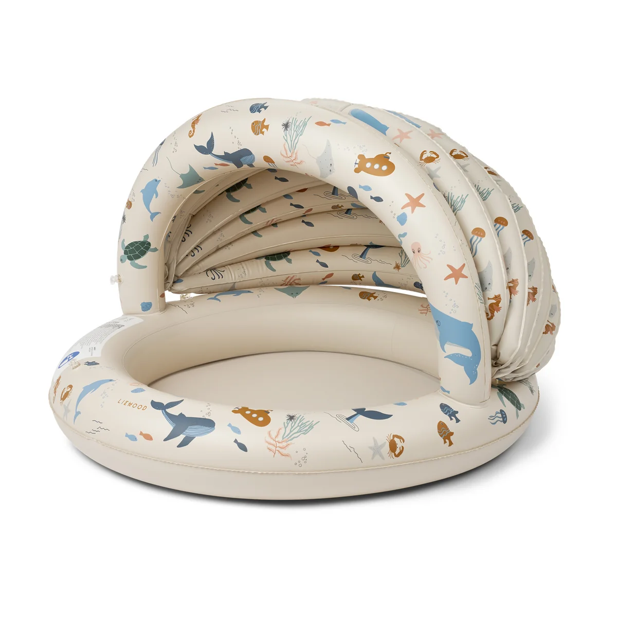 Der Hadleia Pool mit Muscheldach von LIEWOOD sorgt für erfrischenden Badespaß an sonnigen Tagen. Mit einem Durchmesser von 108 cm bietet er ausreichend Platz zum Planschen, während das integrierte Dach in Muschelform angenehmen Schatten spendet und vor direkter Sonneneinstrahlung schützt.