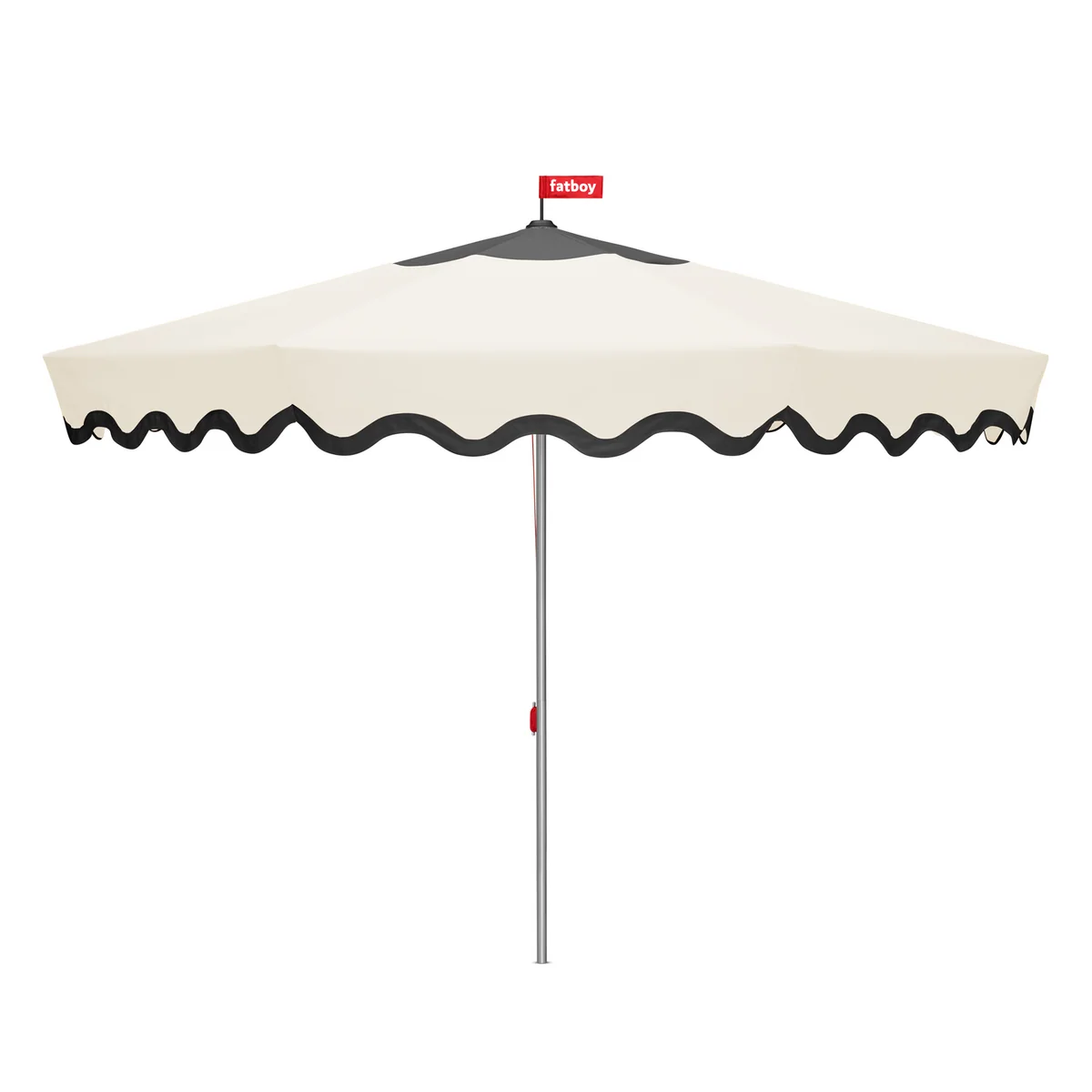 Mit einem großzügigen Durchmesser von 3,5 Metern spendet das farbbeständige Polyestergewebe angenehmen Schatten und bietet optimalen Schutz vor UV-Strahlen. Zudem ist das Material wasser- und schmutzabweisend. Der stabile Aluminiumrahmen sorgt für sicheren Stand, während die mitgelieferte Schutzhülle und die markante Fatboy-Flagge das Design abrunden.