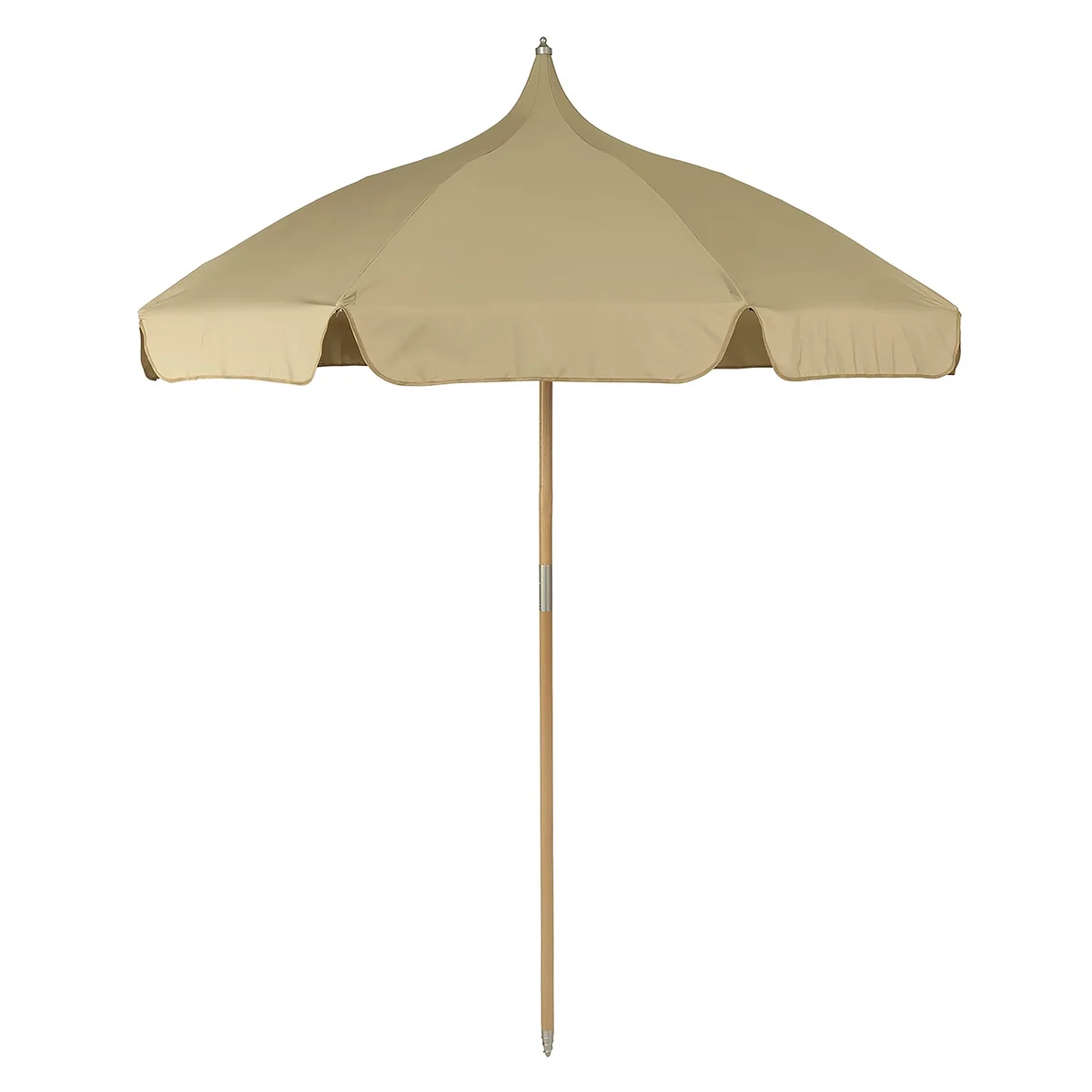 Der Lull Sonnenschirm von Ferm Living bietet das perfekte Schutzschild für die unerbittliche Hitze des Sommers. Der Sonnenschirm lädt zu entspannten und gelassenen Momenten im Schatten ein und ist ideal für Gartenpicknicks am Strand und überall dort, wo Schutz vor der Sonne benötigt wird. Mit der romantischen Pagodenform und dem Holzstiel bietet der Schirm eine großzügige Fläche für gemeinsame Ausflüge. Der Lull Umbrella bietet UV30+ Schutz und wird in einer praktischen, passenden Tasche geliefert, um den Transport zu erleichtern.