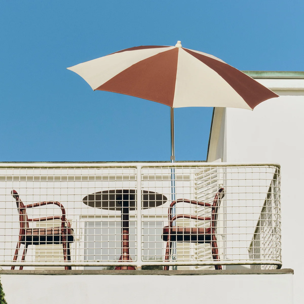 Der Terrazza Sonnenschirm von HAY vereint funktionalen Sonnenschutz mit einer lebendigen, sommerlichen Ästhetik. Entworfen für Gärten, Terrassen und Balkone, spendet der Sonnenschirm angenehmen Schatten und setzt gleichzeitig einen farbigen Akzent im Außenbereich.
