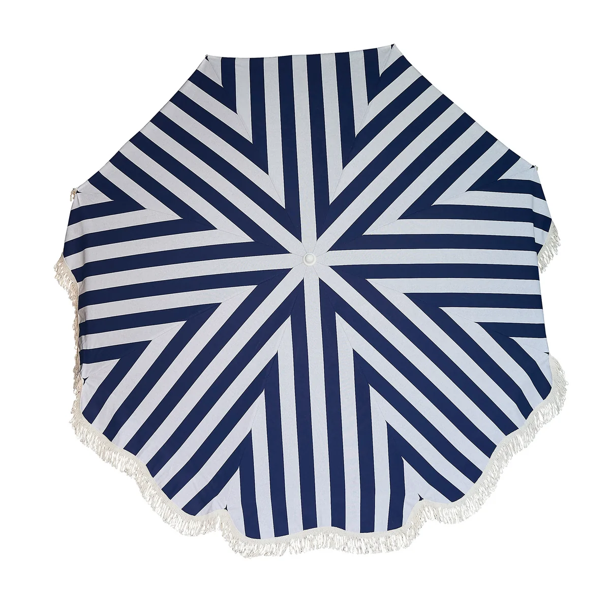 Der Retro Sonnenschirm von Jan Kurtz erinnert an die 60er Jahre des letzten Jahrhunderts und seine schönen Farbkombinationen haben etwas von Eiscreme. Mit seinen Fransen an den Enden bringt er ein heimeliges Gefühl auf die Terrasse oder an den Pool und wirkt dabei dennoch hochwertig und stabil.