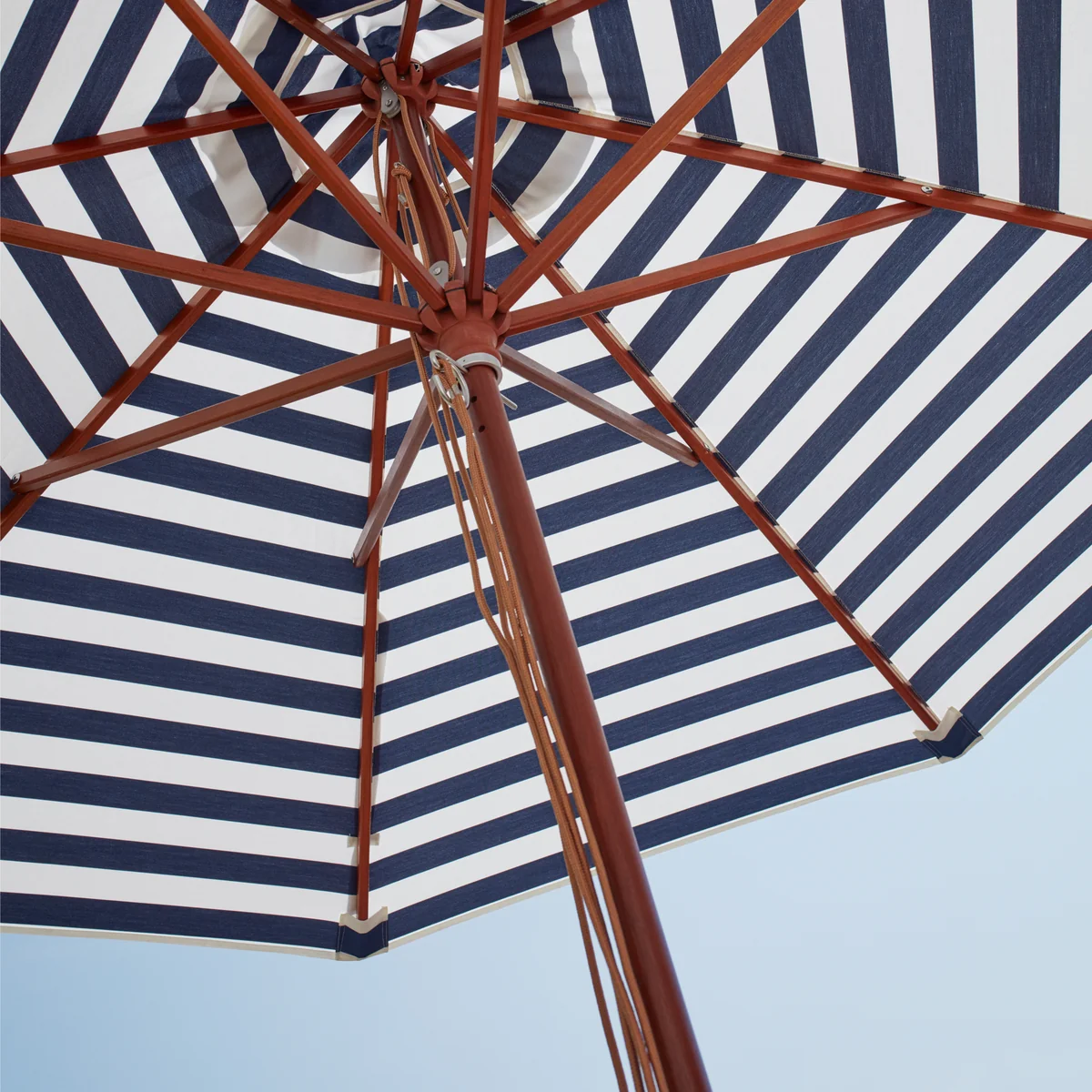 Im klassischen Design schützen die Schirme vor der Sonne und sind über viele Jahre hinweg praktische Begleiter an heißen Sommertagen. Die Schirme bestehen aus einem Gestell aus robustem Merantiholz. Der strapazierfähige Stoff ist teflonbeschichtet, was den Schirm wasser- und schmutzabweisend macht. Bitte beachten: Der Schirm ist nicht wasserdicht.