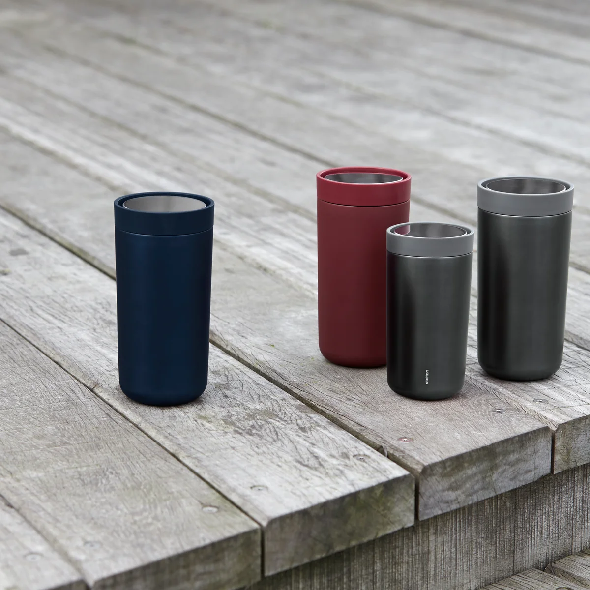 Ideal für das Lieblingsgetränk auf dem Weg zum Büro oder auf Reisen: Der Stelton To Go Click hat eine innovative Klickfunktion zum Öffnen und Schließen des Bechers.