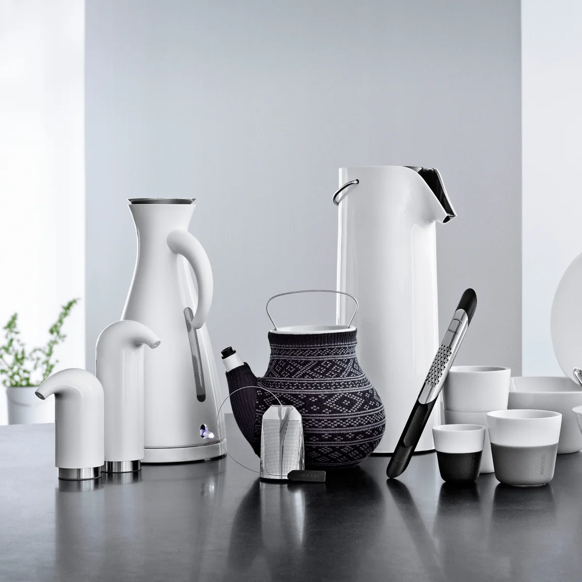 Der Wasserkocher von Eva Solo wurde entwickelt, um aus der Küche mitgenommen und auf den Sofatisch gestellt zu werden. Hierfür sind nicht nur die technischen Vorraussetzungen gegeben - sondern auch die ästhetischen Ansprüche an das Wohnzimmer werden mit dem Eva Solo Wasserkocher erfüllt.