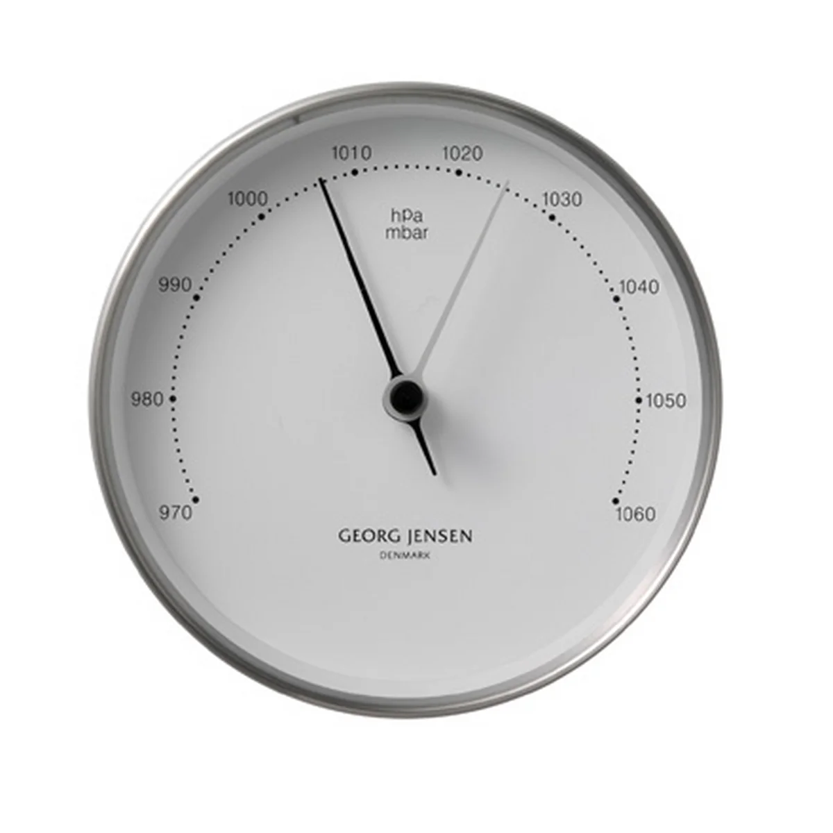 Der Designer Henning Koppel war der Inbegriff des dänischen Designs der Nachkriegszeit. Er war die führende Persönlichkeit einer Bewegung, die Funktionalität mit hochklassigem Design kombinierte. Beim Henning Koppel Barometer von Georg Jensen interne Präzision trifft auf ein elegantes Äußeres. Das Koppel Barometer misst den Luftdruck (970 bis 1060 hPa bzw. mbar) mit beeindruckender Präzision.