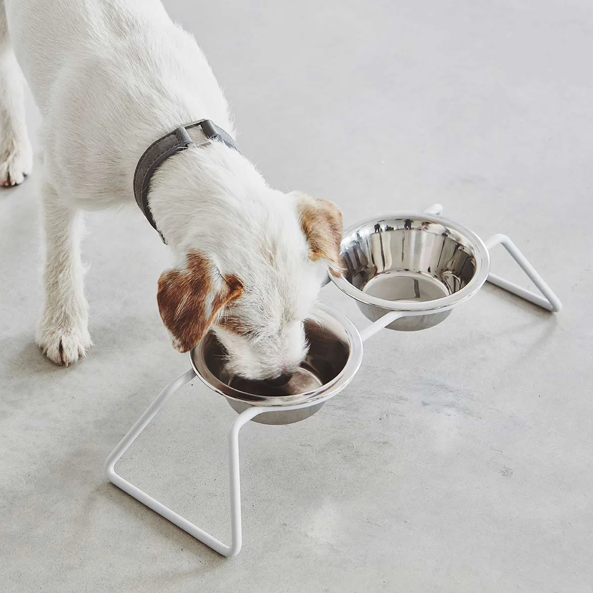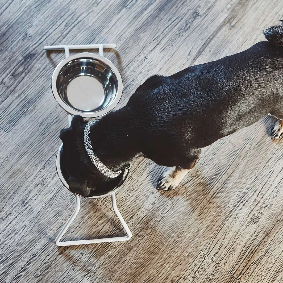 Der Cena Napfständer von MiaCara entspringt dem Atelier des renommierten Designers Filip Gordon Frank. Cena vereint elegantes Design mit Funktionalität und beweist, dass weniger manchmal mehr ist. Der pulverbeschichtete Metallrahmen, erhältlich in zwei stilvollen skandinavischen Farben, verleiht dem Napfständer eine klare Kontur und eine ansprechende optische Leichtigkeit. Die beiden Edelstahlnäpfe schweben nahezu schwerelos in der stabilen Konstruktion und laden den Hund zu einem genussvollen Mahl ein. Cena ist die perfekte Kombination aus Ästhetik und Praktikabilität für anspruchsvolle Haustierbesitzer.