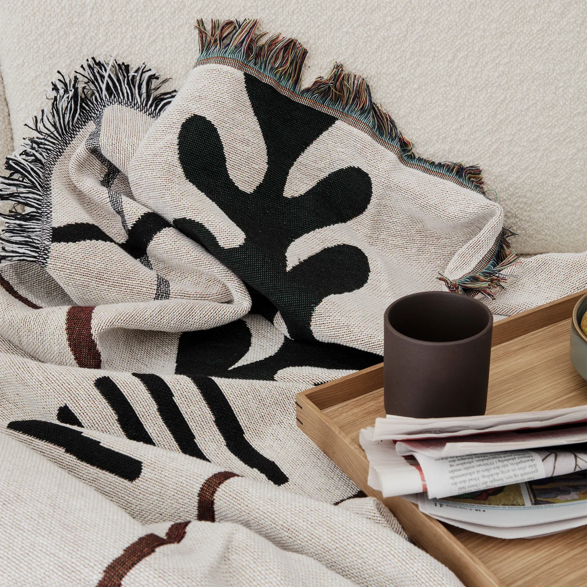 Die Mirage Decke von Ferm Living überzeugt durch Motive von Oasen- und Wüstenparadiesen in abstrakten, modernen Formen. Aus 100 % Baumwolle hergestellt und in den Maßen 120 x 170 cm, eignet sich die Decke gut zum Einkuscheln an kalten Tagen auf dem Sofa und macht sich dank der Motive auch toll als Überwurf auf dem Bett oder über dem Sessel. Die Fransen an allen Seiten sorgen für ein verspieltes Detail. Die Decke ist bei 30 °C in der Waschmaschine zu reinigen.