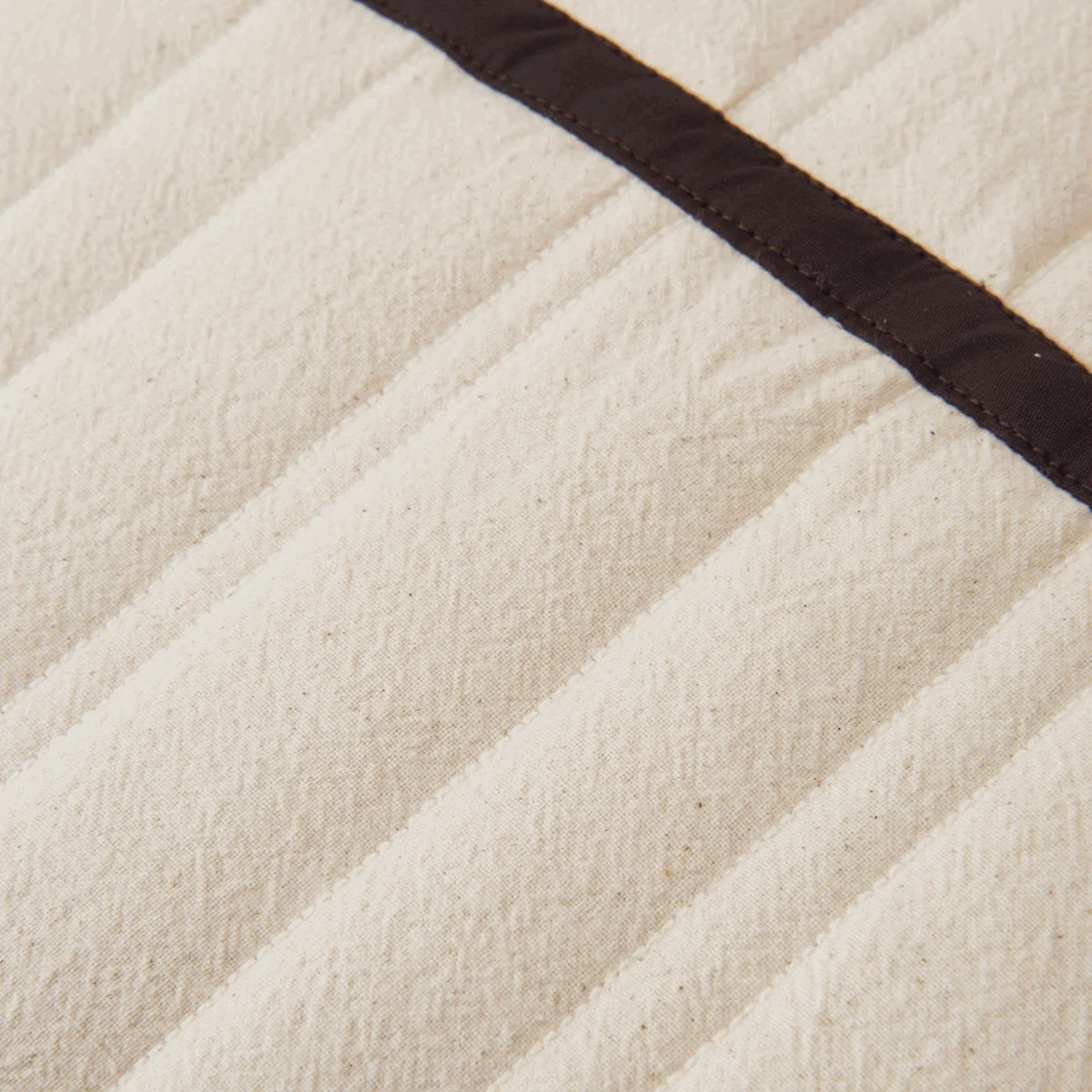 Die Vari Tagesdecke von Ferm Living vereint modernes Design mit nachhaltigen Materialien. Gefertigt aus 100 % Bio-Baumwolle und gefüllt mit recyceltem Polyester, sorgt sie für eine weiche, gepolsterte Haptik und ein angenehmes Gefühl von Komfort. Ihre sanft gewaschene Textur verleiht dem Bett eine strukturierte, moderne Optik, während die feine Paspelierung in Dark Chocolate einen dezenten Kontrast und zusätzliche Tiefe schafft. Ob im Schlafzimmer oder als stilvolles Accessoire im Wohnbereich – die Vari Tagesdecke bringt zeitlose Eleganz in jedes Zuhause.