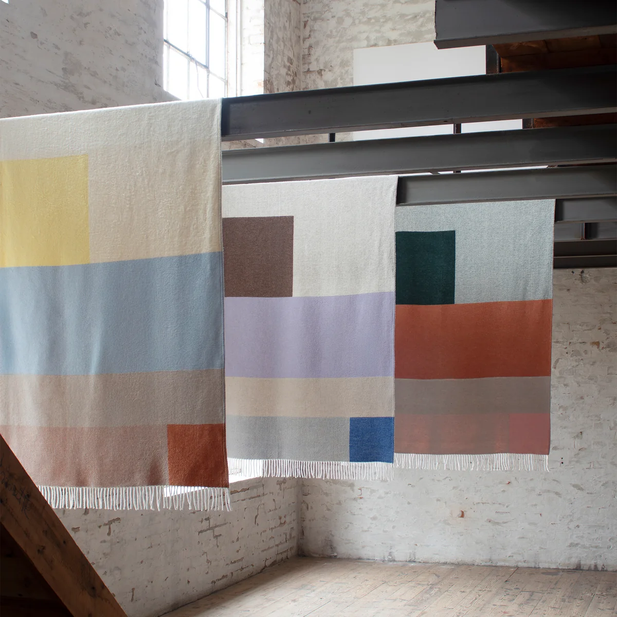 Gefertigt aus einem Baumwollmischgewebe mit gebürsteter Oberfläche bietet die Decke von Mette Ditmer ein besonders weiches und komfortables Gefühl. Das grafische Design und die warmen Farben schaffen eine vielfältige Variation von Mustern und Stimmungen. Durch das Entfalten der Decke kommen neue Details im Design zum Vorschein, die Gemütlichkeit und Komfort einladen.