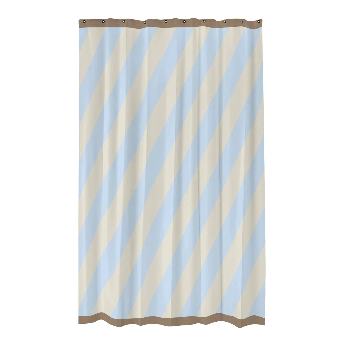 Der Diagonal Duschvorhang schafft eine ruhige und harmonische Atmosphäre im Badezimmer. Mit diagonalen Streifen in einem schönen Olivgrün bietet er ein schlichtes, grafisches Design. Schwarze Metallringe an der warmen Terrakotta-Bordüre ermöglichen ein einfaches Aufhängen.