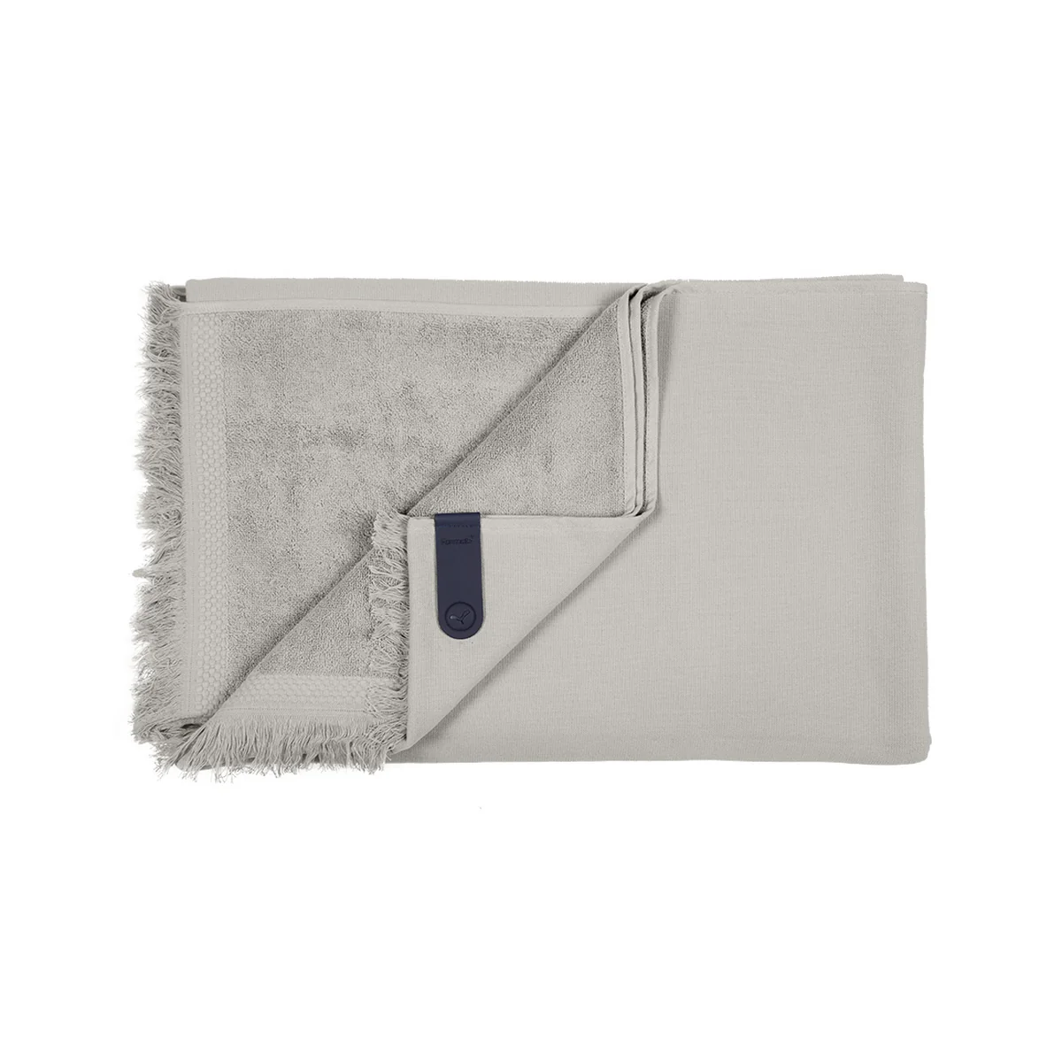 Fouta unterscheidet sich von anderen Tüchern zudem durch seine Fransen, dank welcher es auch als Überwurf auf einem Sofa verwendet werden kann. Ein besonderes Detail ist der für Fermob typische Befestigungsgurt am Rand.