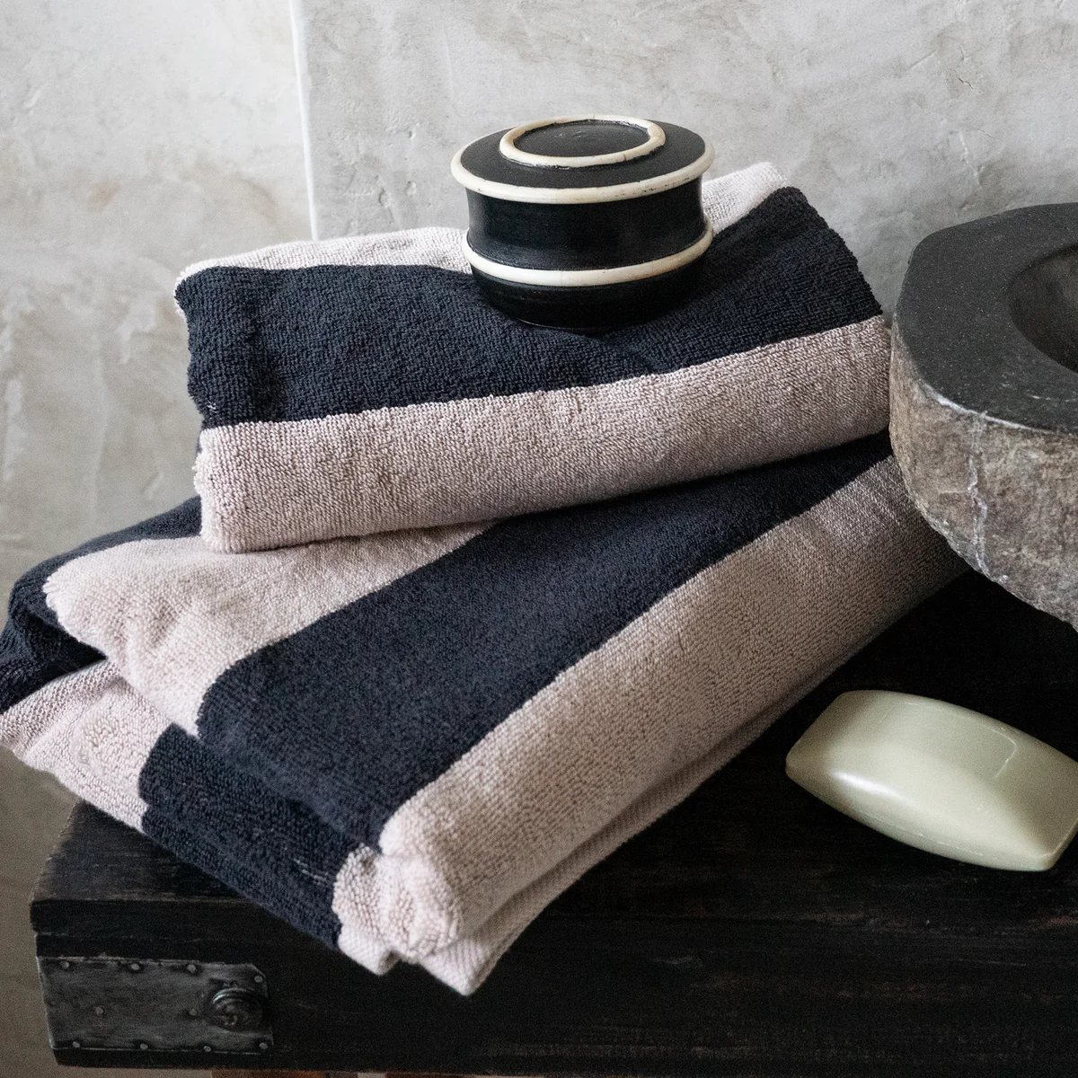 Das gestreifte Umi Badetuch von HANA aus hochwertiger Baumwolle ist nicht nur ein praktisches Accessoire für den Strand oder das Schwimmbad, sondern auch ein stilvolles Statement. Die feinen Streifen verleihen dem Handtuch eine zeitlose Eleganz, während die sorgfältig ausgewählte Baumwolle für eine angenehme Weichheit und hohe Saugfähigkeit sorgt. Die großzügigen Abmessungen bieten ausreichend Platz zum Einwickeln und Abtrocknen, und die strapazierfähige Qualität garantiert eine lange Lebensdauer. Mit dem Umi Badetuch von HANA wird jeder Badetag zu einem luxuriösen Erlebnis, bei dem Komfort und Stil Hand in Hand gehen.