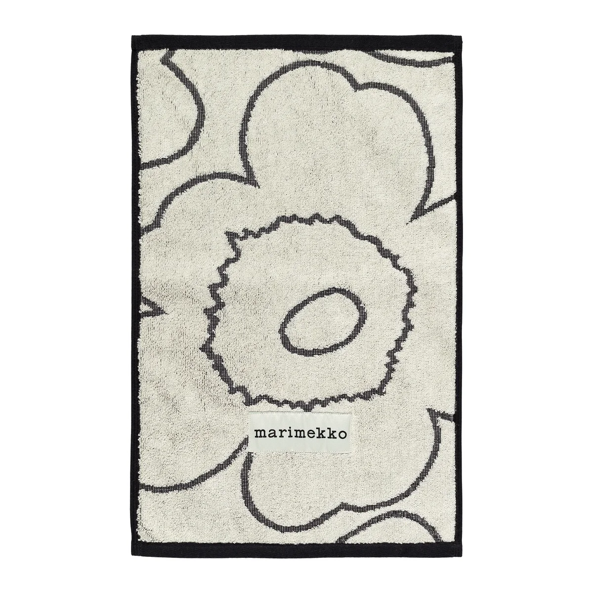 Das Piirto Unikko Gästehandtuch von Marimekko aus schwerem Bio-Baumwollfrottee zeichnet sich durch seine hohe Qualität und Saugfähigkeit aus. Auf einer Seite zeigt es das geprägte Piirto Unikko-Muster, eine stilisierte Variante des kultigen Blumenmusters, das 1964 von Maija Isola entworfen wurde. Das Marimekko-Label ziert den unteren Rand und verleiht ihm einen Hauch von Authentizität.